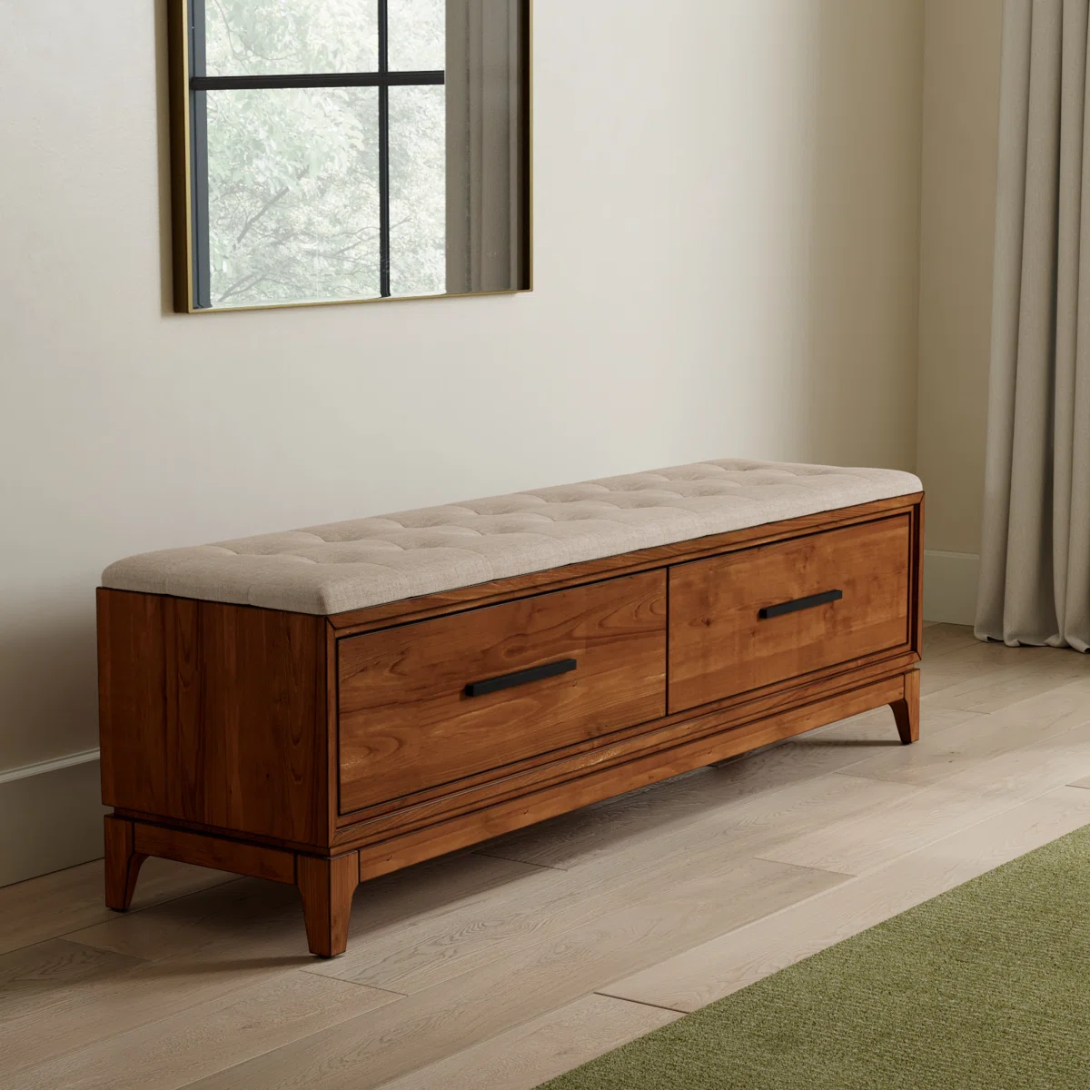 Bangku Kayu Jati Minimalis dengan Laci dan Bantalan – Tsuki