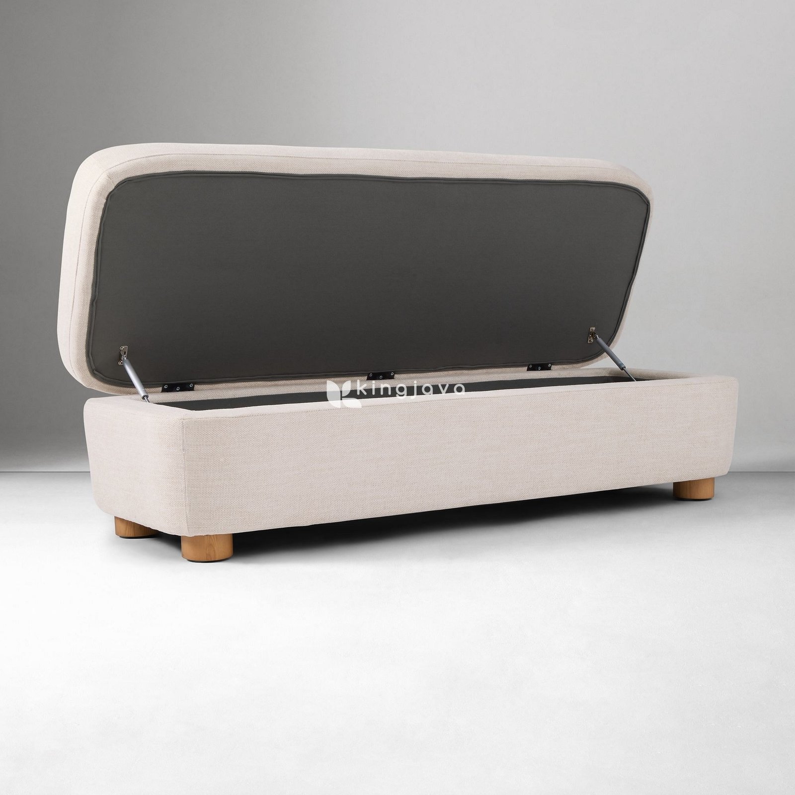 Fitur unggulan dari bangku Equinox adalah mekanisme hidrolik canggih yang terintegrasi pada penutupnya. Mekanisme ini memungkinkan penutup dibuka dan ditutup dengan mudah dan aman, tanpa perlu tenaga berlebih, serta menjaga penutup tetap terbuka saat Anda mengakses isi di dalamnya. Di balik penutup yang empuk, terdapat ruang penyimpanan yang luas, dilapisi dengan kain berwarna abu-abu gelap, menciptakan kontras yang menarik dan menjaga barang-barang Anda tetap terorganisir dan terlindungi dari debu. Interior yang gelap juga membantu menyembunyikan noda atau kotoran kecil yang mungkin terjadi seiring waktu.