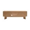 Material kayu jati solid dengan serat alami yang indah menjadi fondasi utama bufet ini. Kayu jati dipilih karena kekuatannya dan daya tahannya terhadap perubahan suhu. Selain itu, finishing natural dengan lapisan matte menonjolkan keindahan serat kayu dan memberikan perlindungan ekstra. Di sisi lain, detail konstruksi menggunakan sambungan dowel dan sekrup tersembunyi, sehingga menjamin kekuatan dan stabilitas bufet dalam jangka waktu yang lama. Tak hanya itu, handle kuningan memberikan sentuhan mewah dan kontras yang menarik pada desain keseluruhan.