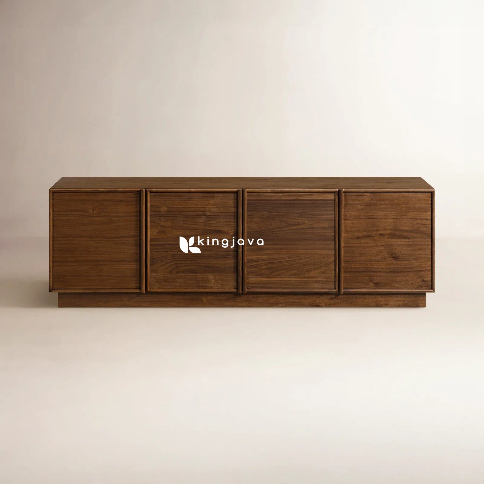 Buffet Kayu Walnut Solid Minimalis Modern 4 Pintu Penyimpanan – Kenza