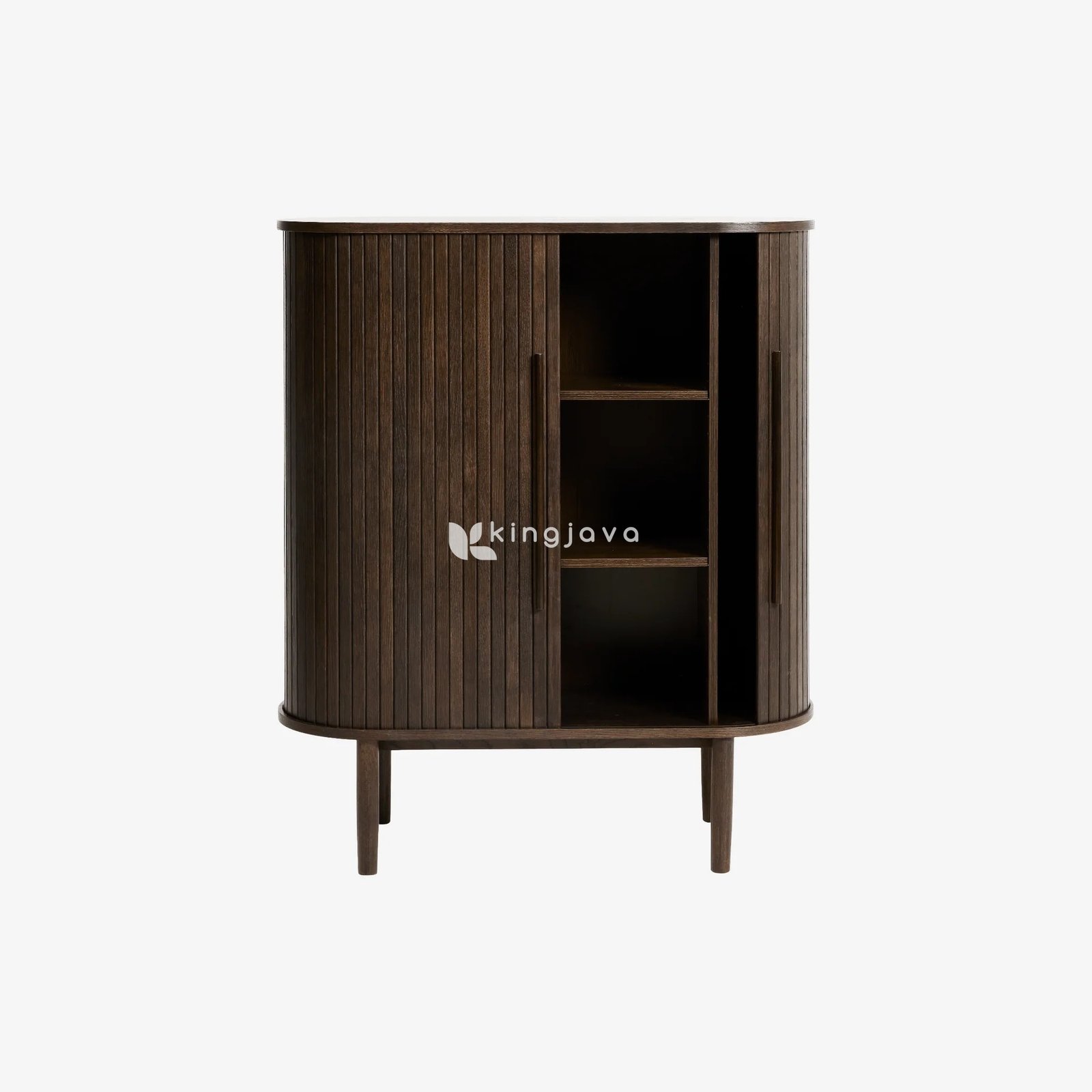 Kabinet Accent Kayu Bergaris Vertikal Modern – Silvanus adalah tambahan yang sempurna untuk ruang tamu, kamar tidur, atau ruang makan Anda. Kabinet ini dirancang dengan gaya modern yang elegan, menampilkan bentuk oval yang unik dan detail garis vertikal yang memberikan tekstur visual yang menarik. Dua pintu kabinet membuka untuk mengungkapkan ruang penyimpanan yang luas, ideal untuk menyimpan buku, peralatan makan, atau barang-barang dekoratif lainnya.