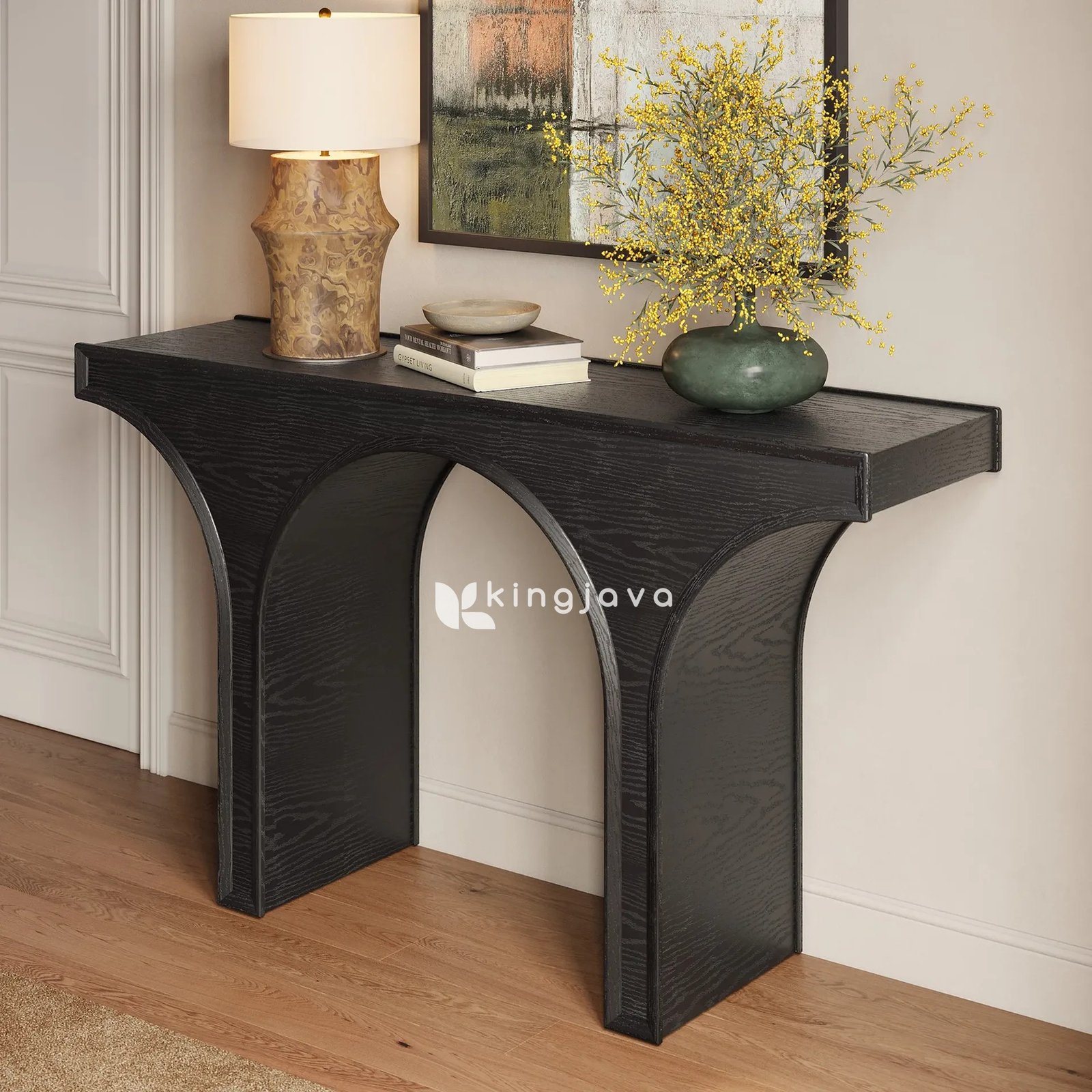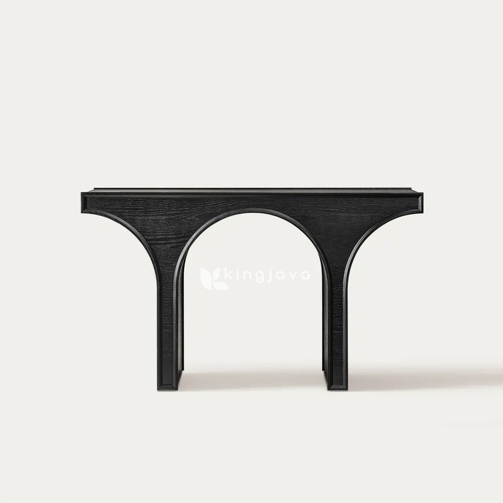 Konsol Kayu Jati Solid Modern Minimalis – Raya hadir dengan desain yang memukau untuk melengkapi interior rumah Anda. Konsol ini memiliki bentuk unik menyerupai jembatan dengan lengkungan yang anggun. Warna hitam pekat dengan finishing satin memberikan kesan modern dan mewah. Oleh karena itu, konsol ini sangat cocok untuk ditempatkan di ruang tamu, ruang keluarga, atau bahkan kamar tidur. Selain itu, konsol ini akan menciptakan suasana ruangan yang elegan dan berkelas.
