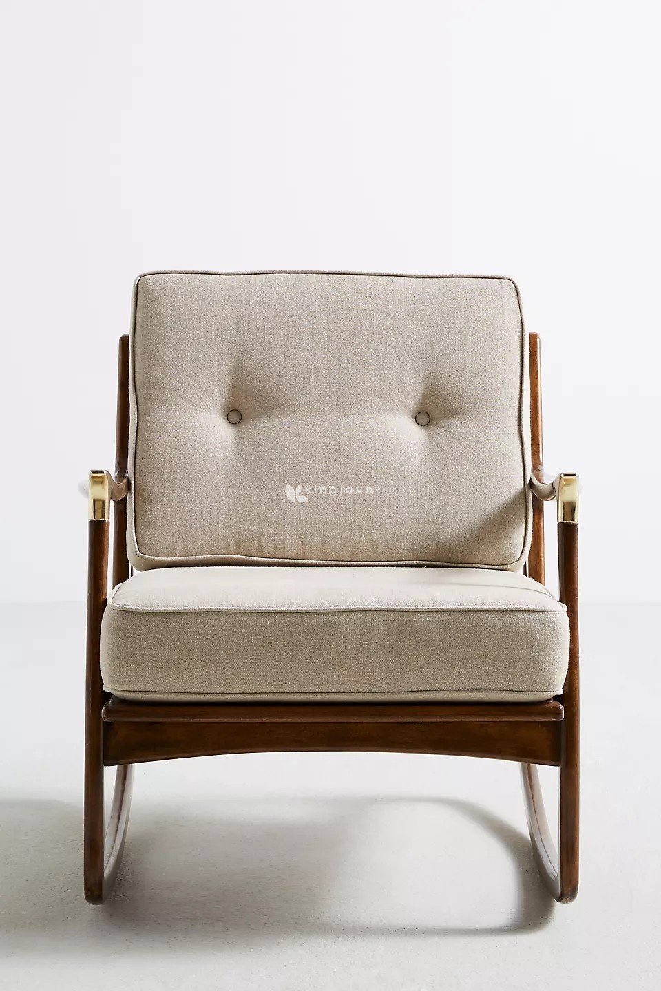 Kursi Goyang Kayu Jati Solid Modern Mid-Century Aksen Kuningan – Manon