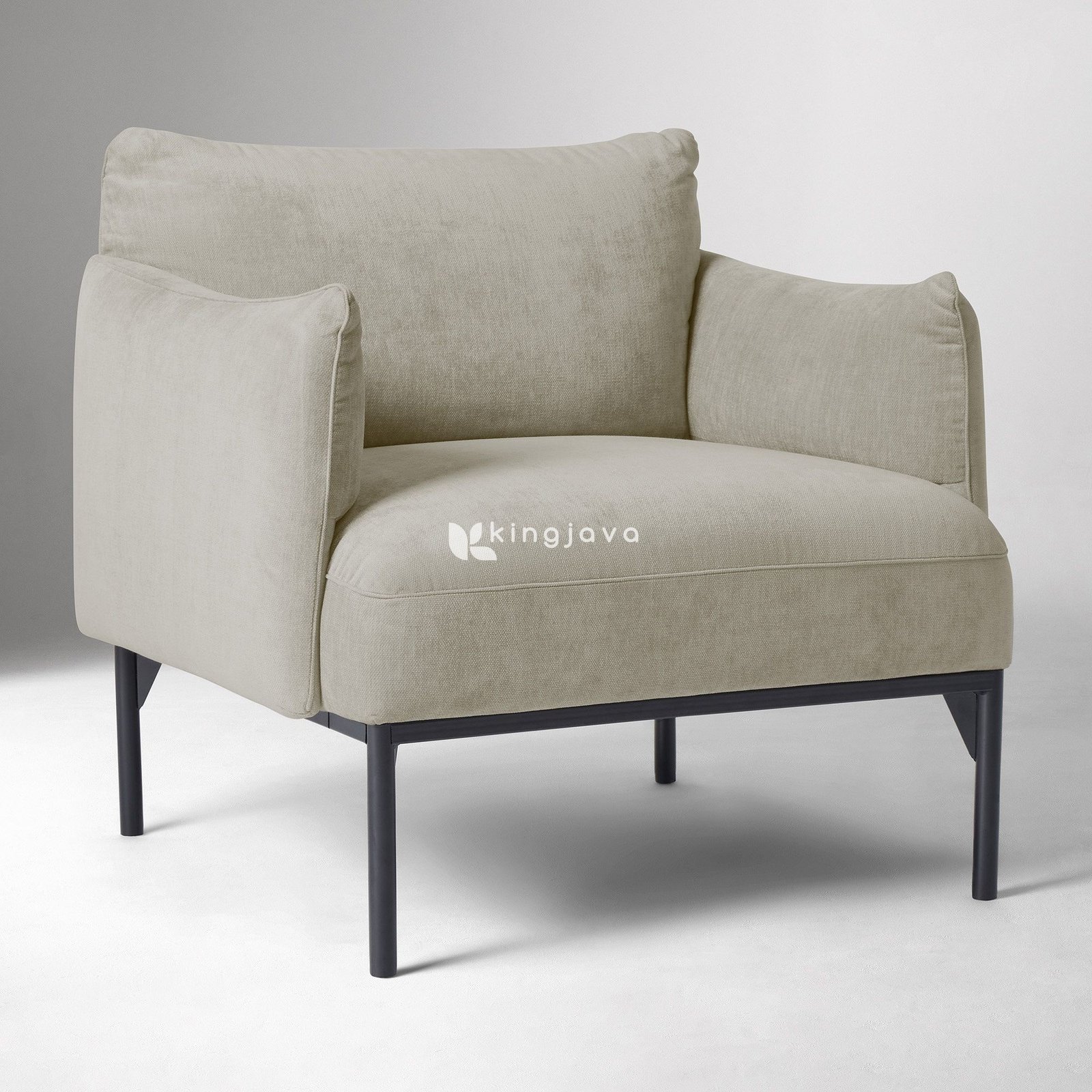Lapisan kain kanvas berkualitas tinggi membungkus seluruh bagian kursi, memberikan tekstur lembut dan nyaman saat bersentuhan dengan kulit. Warna netral kain kanvas ini memberikan fleksibilitas dalam penataan ruangan, mudah dipadukan dengan berbagai skema warna dan dekorasi interior. Desain minimalis kursi ini menonjolkan garis-garis bersih dan proporsi yang seimbang, menciptakan tampilan yang modern dan elegan.