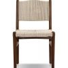 Dudukan dan sandaran kursi dianyam dengan tali alami berwarna krem yang lembut, menciptakan tekstur yang menarik dan memberikan kenyamanan optimal saat duduk. Desain anyaman yang terbuka memungkinkan sirkulasi udara yang baik, menjaga Anda tetap sejuk dan nyaman bahkan dalam cuaca hangat. Bentuk kursi yang ergonomis dirancang untuk menopang postur tubuh yang baik, menjadikannya ideal untuk makan malam santai atau percakapan panjang.