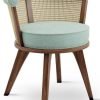 Bagian sandaran kursi diisi dengan anyaman rotan alami yang memberikan sirkulasi udara optimal, menjaga Anda tetap sejuk dan nyaman bahkan dalam cuaca hangat. Bagian atas sandaran dan dudukan dilapisi dengan kain kanvas berwarna hijau lembut yang memberikan sentuhan lembut dan nyaman saat diduduki. Detail silinder pada bagian atas sandaran menambah sentuhan unik dan modern pada desain keseluruhan.