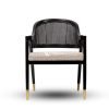 Kaki-kaki kursi yang meruncing ke bawah dilengkapi dengan aksen logam berwarna emas di bagian ujungnya. Detail ini memberikan sentuhan glamor dan menyeimbangkan keseluruhan desain kursi. Konstruksi kursi yang kokoh menjamin stabilitas dan daya tahan, sehingga kursi ini dapat dinikmati selama bertahun-tahun. Kursi Aoi adalah investasi cerdas untuk meningkatkan kualitas hidup dan mempercantik tampilan ruangan Anda.