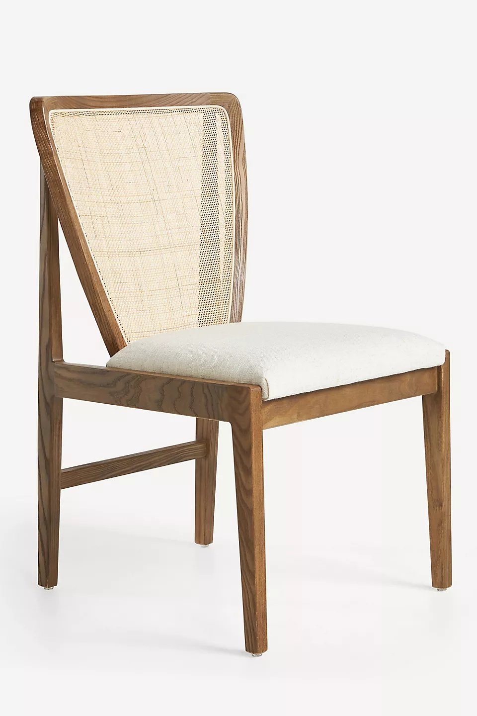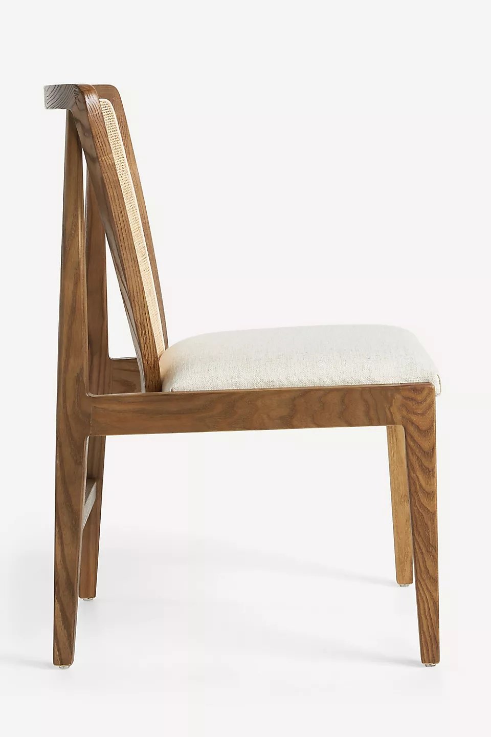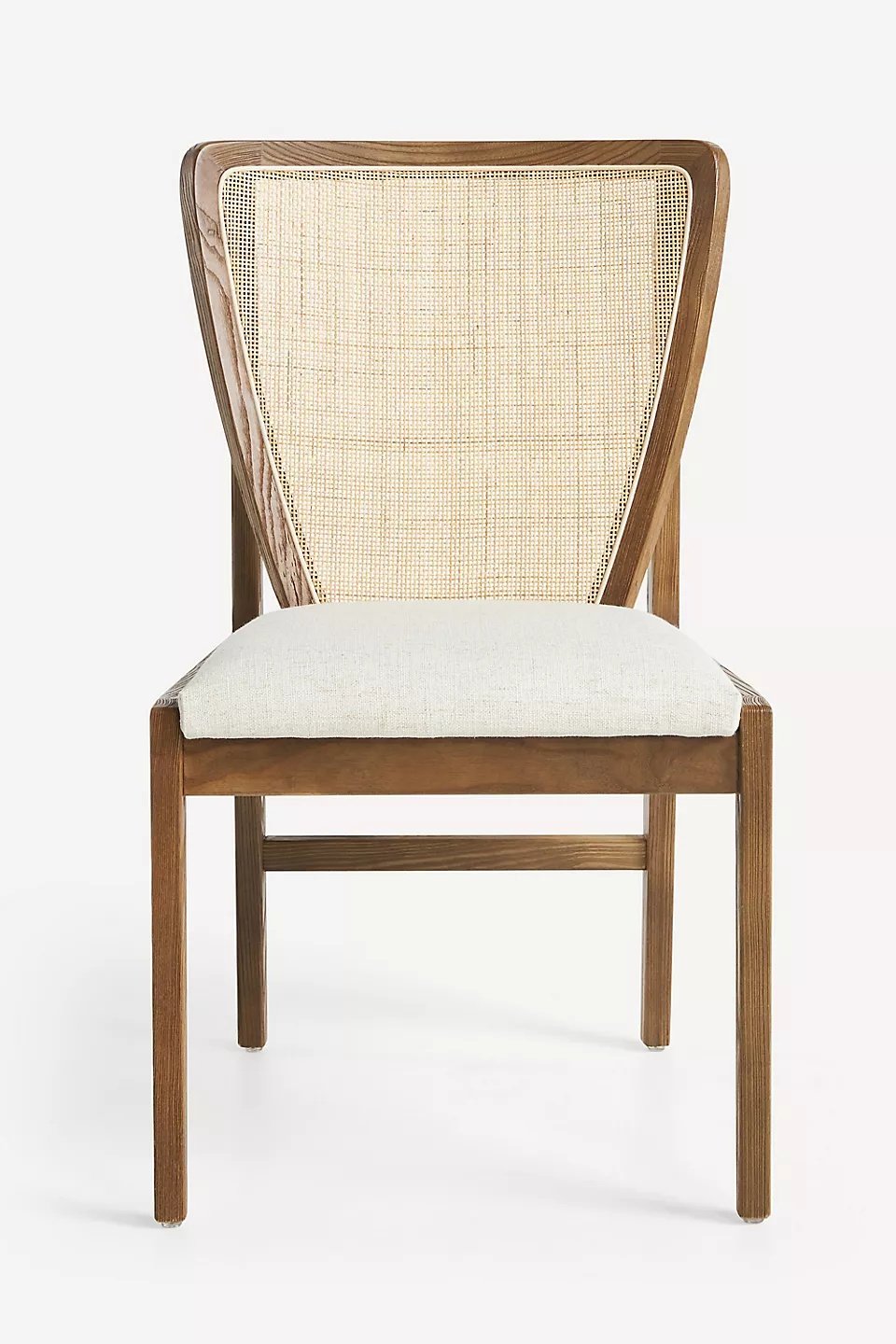 Sandaran kursi yang unik menggabungkan anyaman rotan alami, memberikan sentuhan tekstur yang menarik dan sirkulasi udara yang baik, sehingga Anda tetap nyaman bahkan saat duduk dalam waktu lama. Bentuk sandaran yang sedikit melengkung memberikan dukungan ergonomis yang sangat baik. Dudukan kursi dilapisi dengan kain linen berwarna krem yang lembut dan tahan lama, memberikan kenyamanan ekstra saat Anda menikmati hidangan bersama keluarga dan teman-teman.