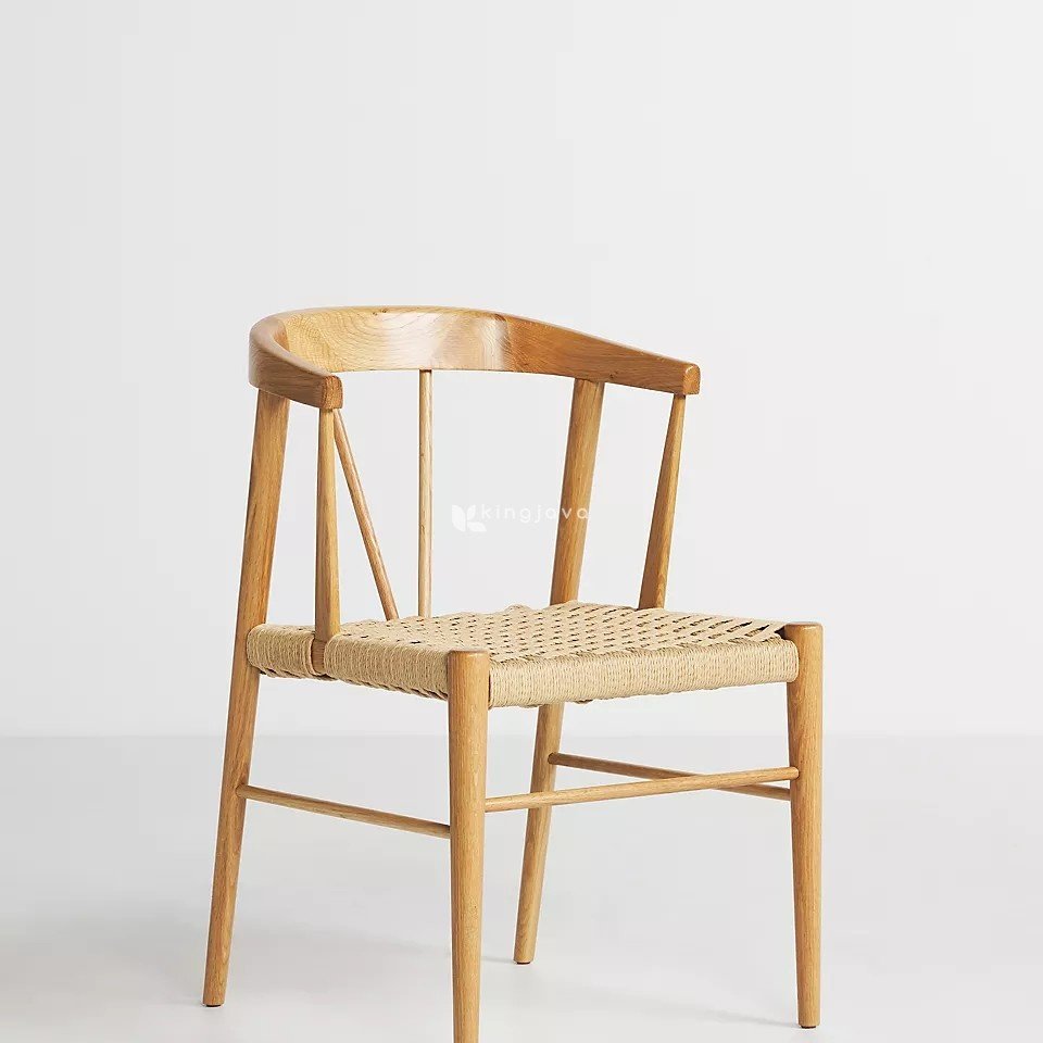 - Nama Produk: Kursi Makan Jati Solid Sandaran Melengkung Anyaman Alami – Marcellus