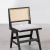 Rangka kursi terbuat dari kayu solid yang kuat dan tahan lama. Kayu ini difinishing dengan warna hitam pekat yang memberikan kesan mewah dan modern. Finishing yang digunakan tampak halus dan merata, menonjolkan tekstur alami kayu. Bagian sandaran kursi diisi dengan anyaman rotan alami yang memberikan sentuhan tradisional dan sirkulasi udara yang baik, sehingga nyaman digunakan dalam waktu lama. Warna rotan yang cerah kontras dengan warna hitam rangka, menciptakan tampilan visual yang menarik.