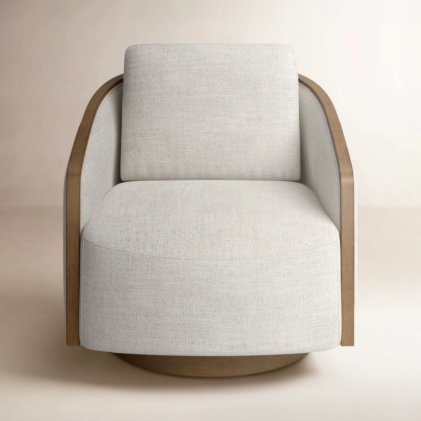 Kursi Putar Kain Linen Kayu Jati Modern Minimalis dengan Sandaran Punggung Tinggi