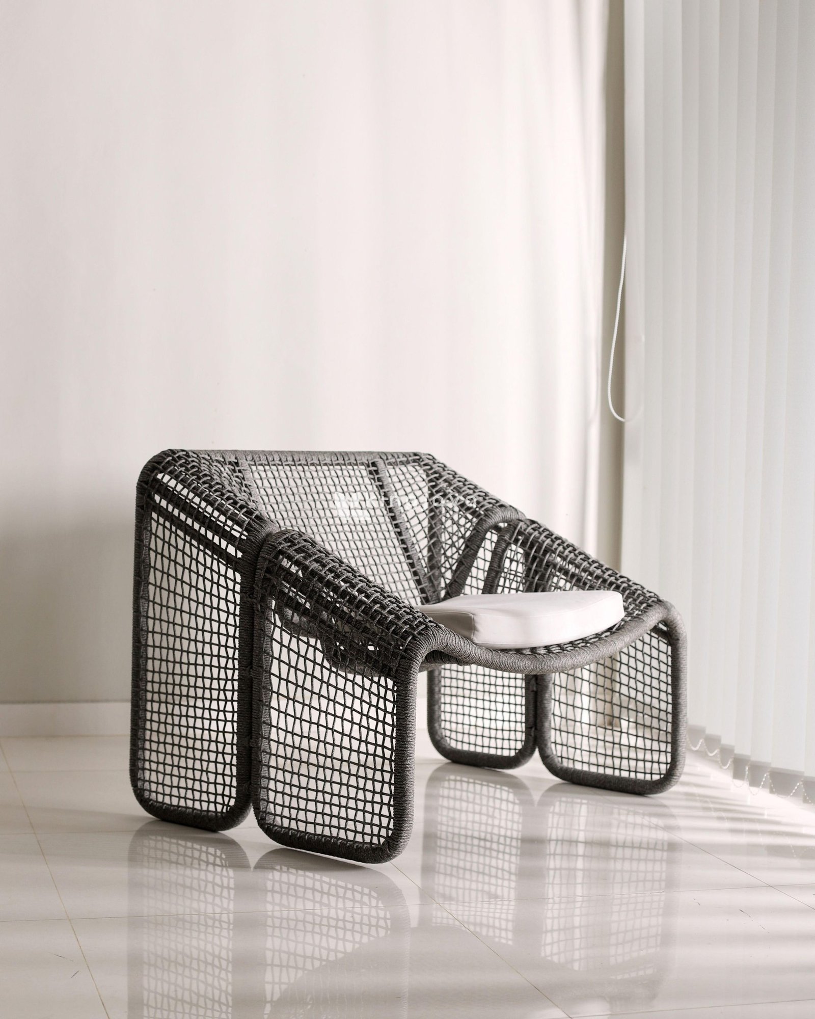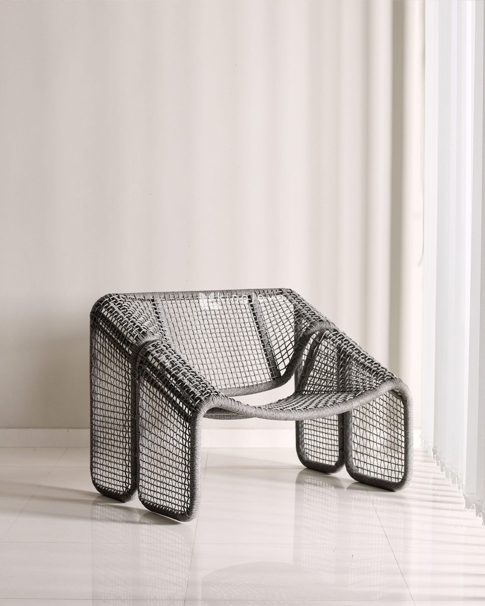 Kursi Santai Anyaman Benang Polyester Abu-abu Minimalis Calysta