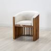 Kursi Santai Kayu Jati Solid Modern Minimalis Desain Jari-jari Melengkung – Makoto adalah perpaduan sempurna antara fungsionalitas, kenyamanan, dan estetika modern yang menawan. Dirancang dengan detail yang cermat, kursi ini menampilkan konstruksi kayu jati solid berkualitas tinggi yang membentuk bingkai melengkung elegan, dihiasi dengan susunan jari-jari vertikal yang rapi. Setiap bilah kayu dipasang dengan presisi, menciptakan pola visual yang menarik sekaligus memberikan struktur yang kokoh dan stabil. Tekstur alami kayu jati dengan guratan yang khas diperkaya oleh finishing semi-glossy natural, menonjolkan keindahan serat kayu dan memberikan sentuhan hangat pada ruangan.