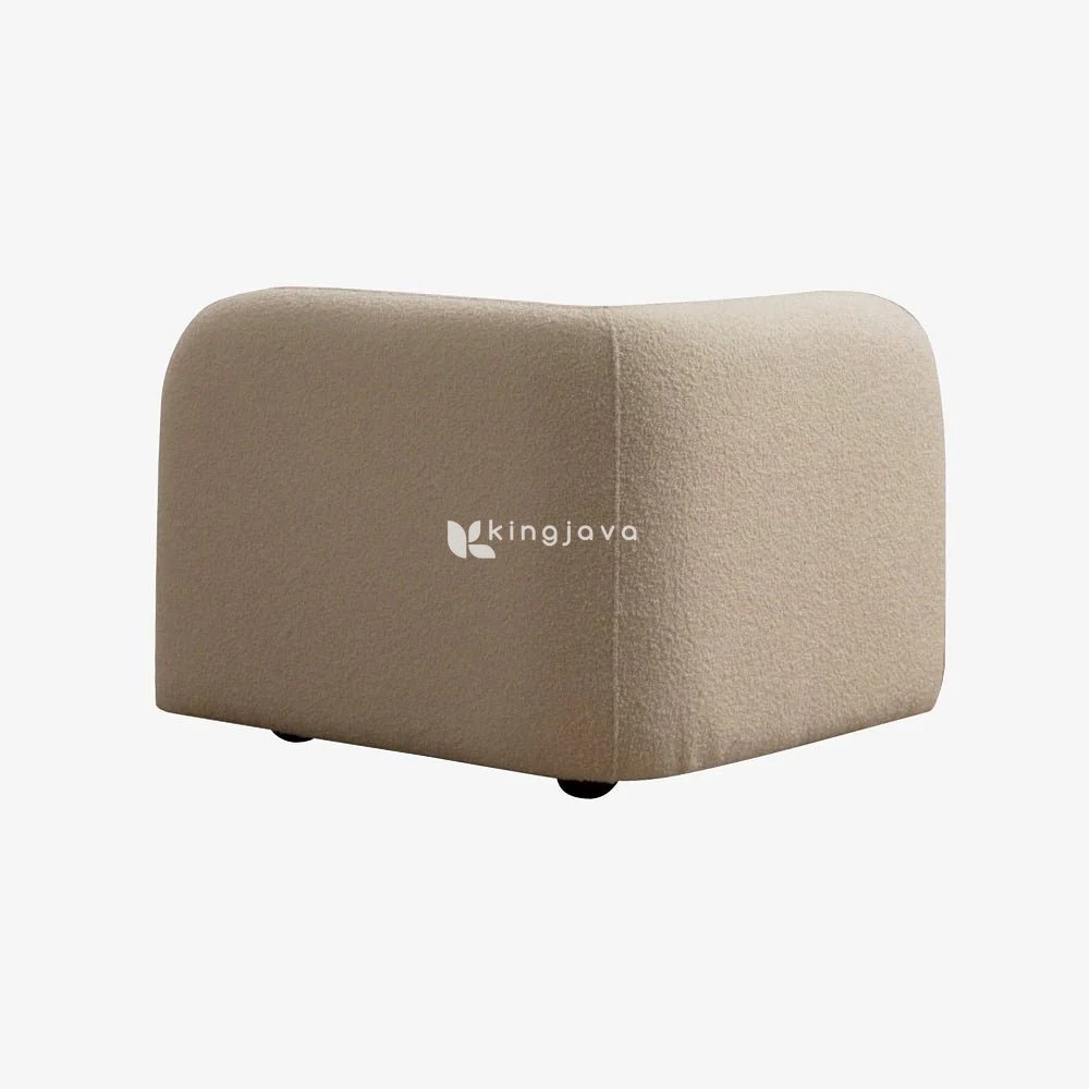 • Finishing: Kain Boucle bertekstur lembut, Kaki kayu solid dengan finishing gelap