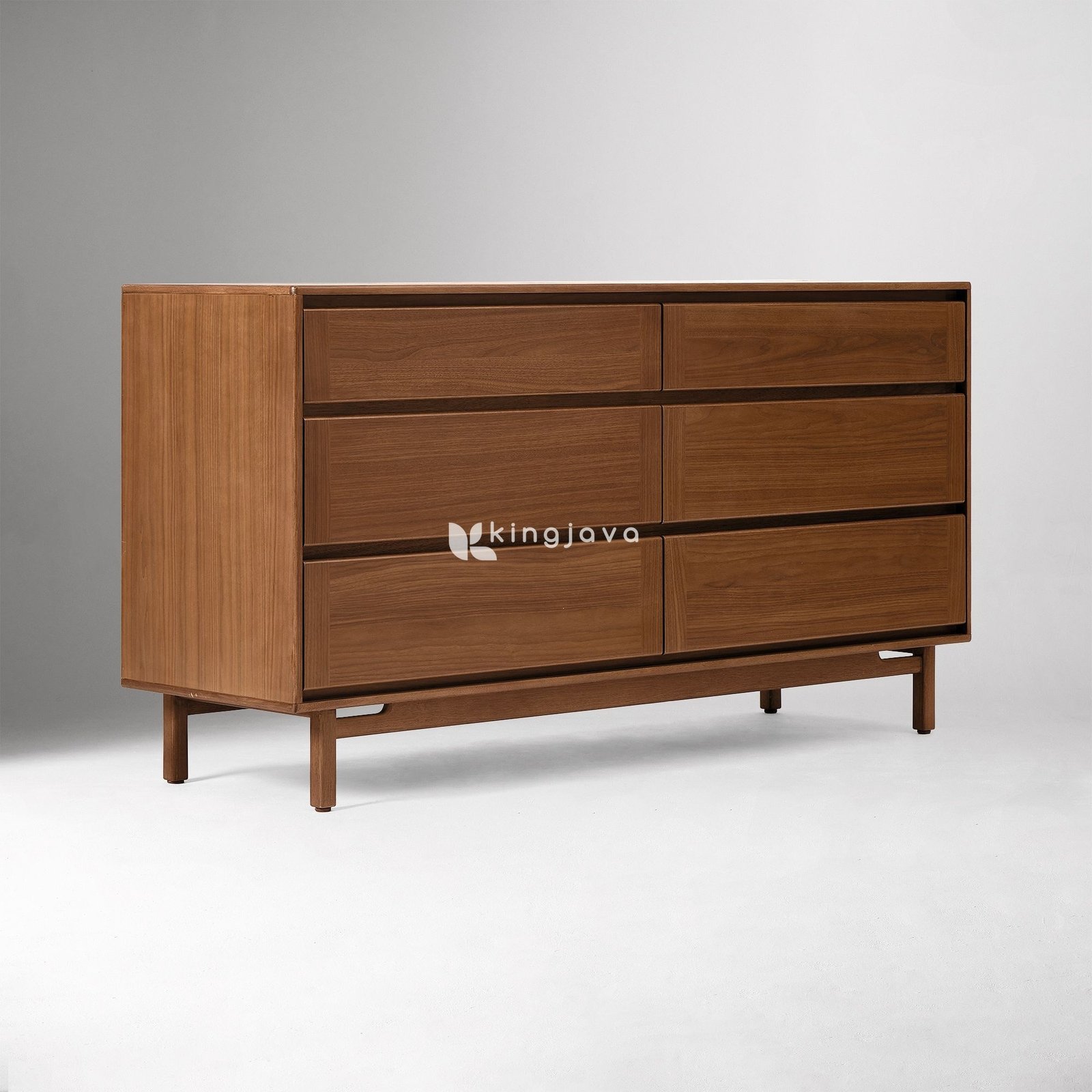 - Nama Produk: Laci Penyimpanan Kayu Solid Enam Laci Gaya Mid-Century Modern – Sovereign