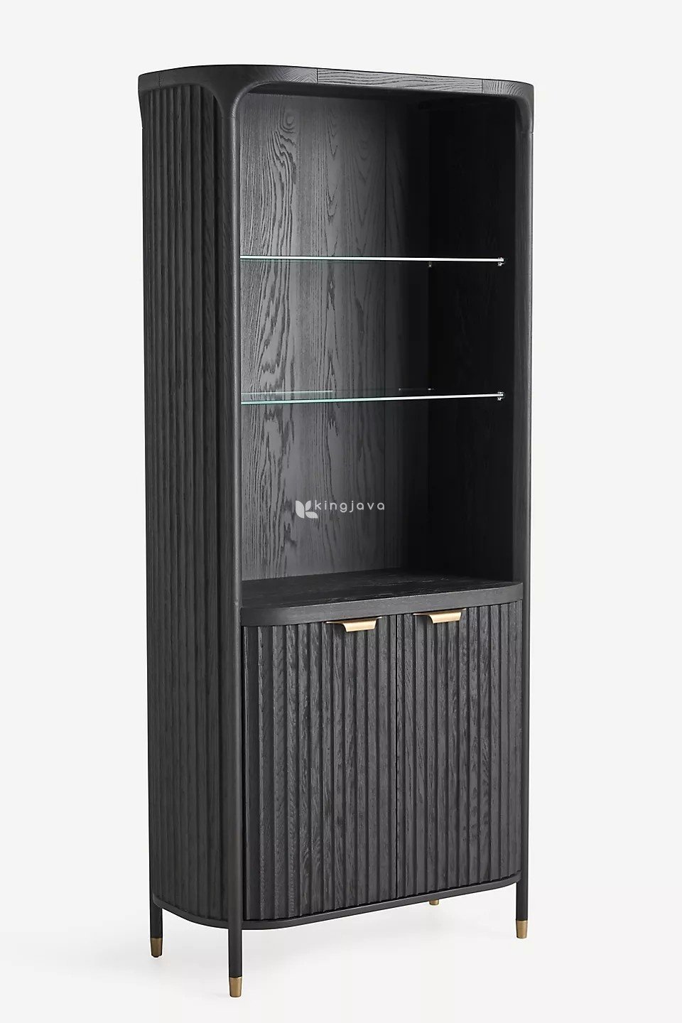- Nama Produk: Lemari Pajangan Kayu Jati Modern Minimalis Pintu Fluted Aksen Emas – Neptune