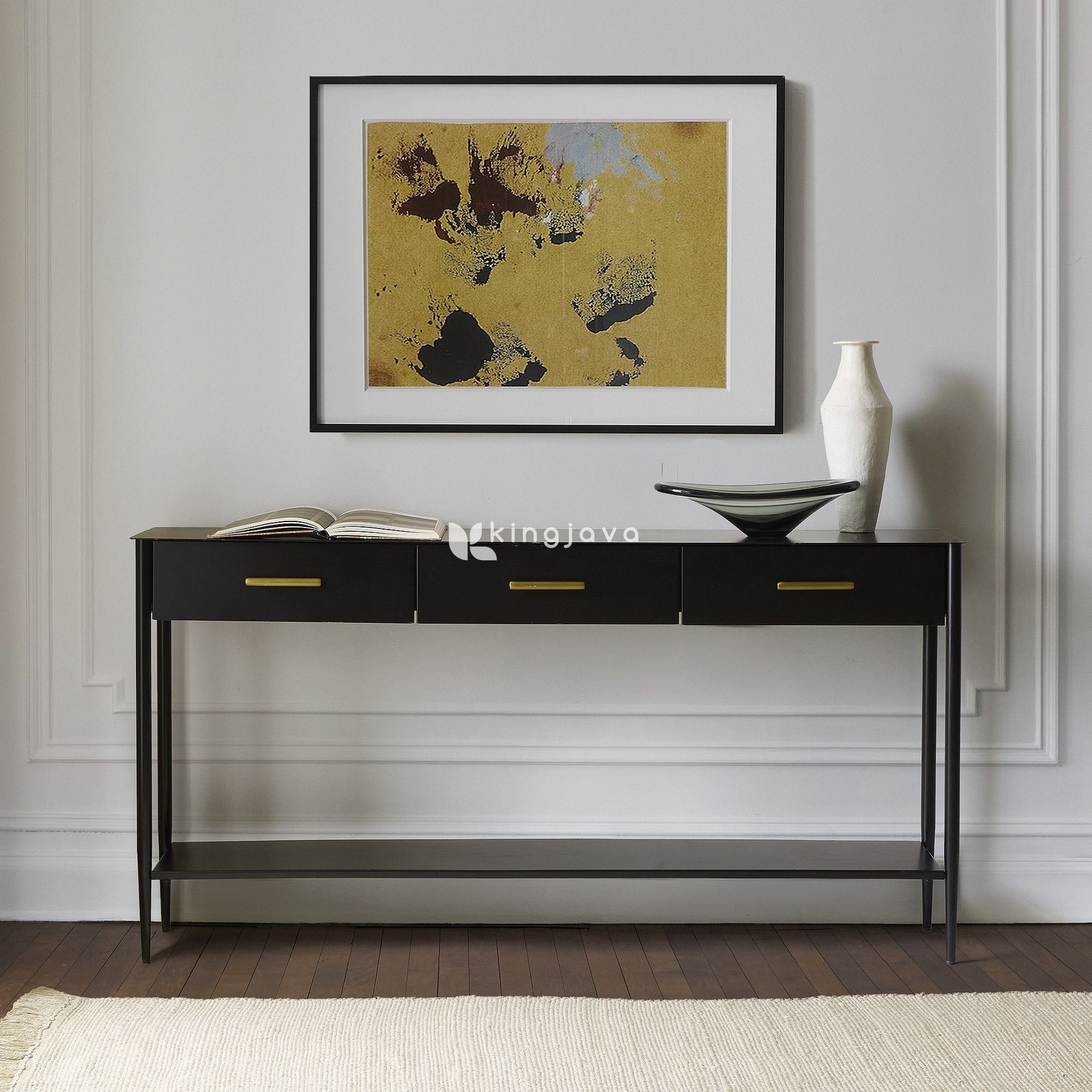 Meja Konsol Hitam Minimalis 3 Laci Emas Antonio – Furnitur Modern