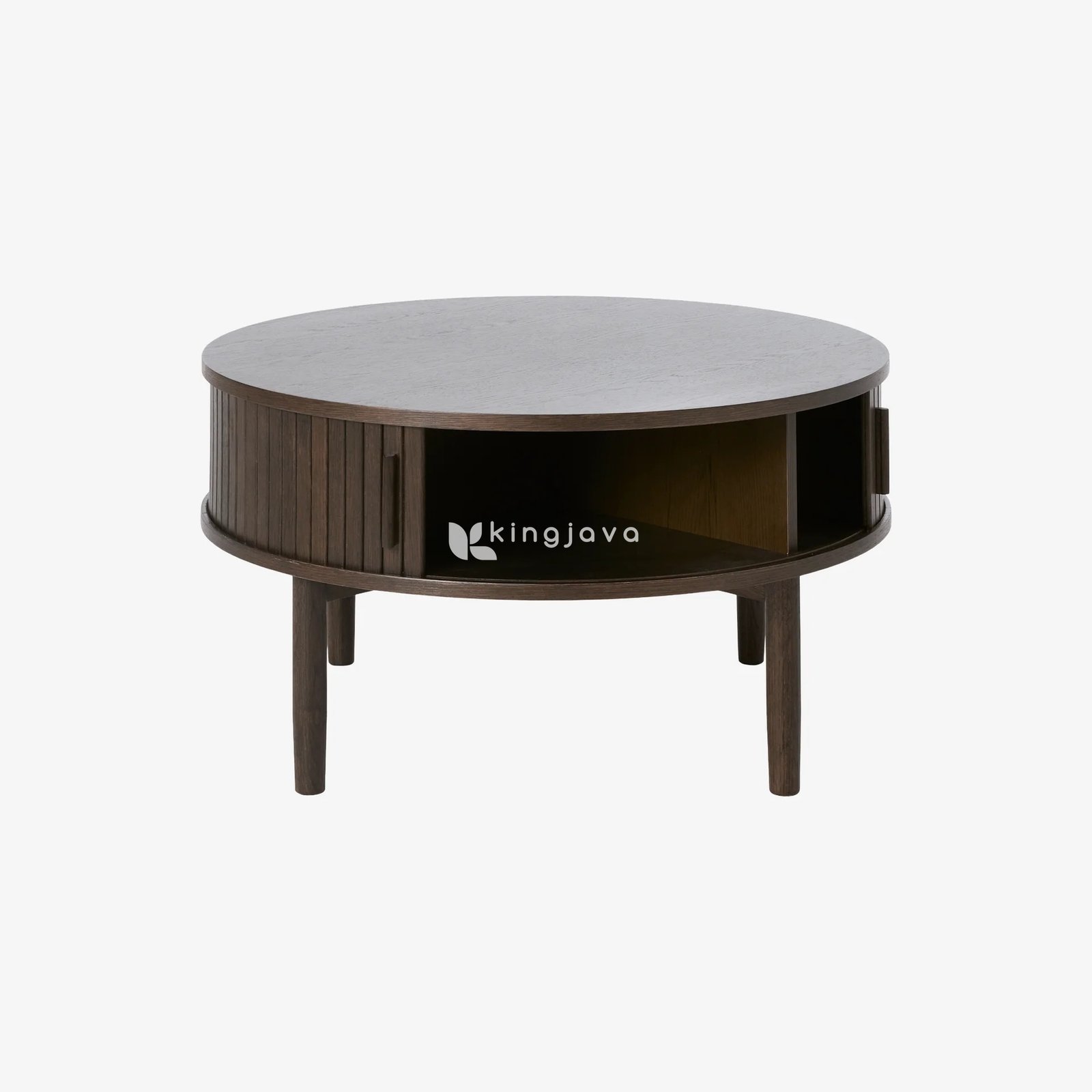 Meja Kopi Bundar Kayu Solid Modern dengan Pintu Geser – Luminara