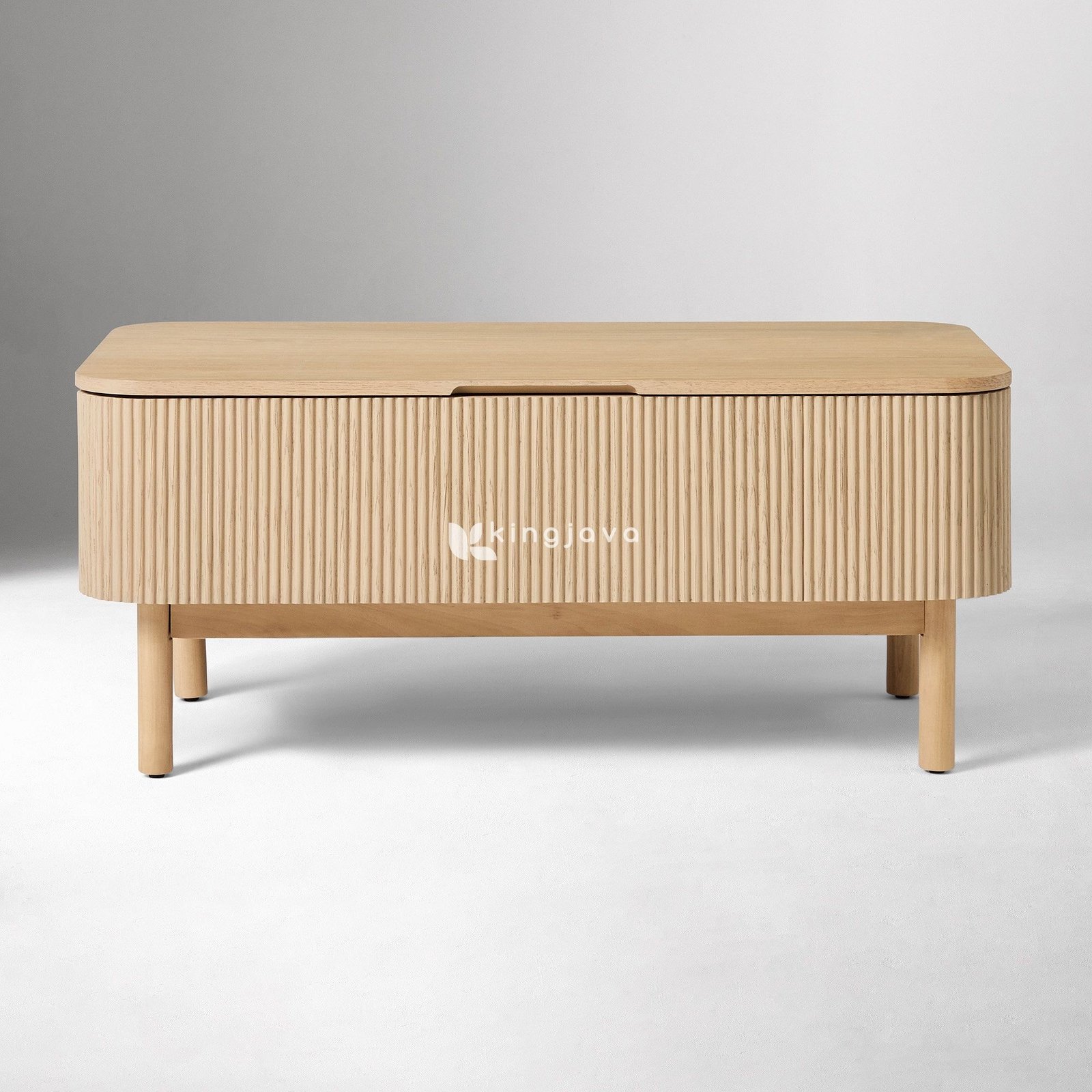 Meja Kopi Kayu Jati Modern Minimalis Lift-Top Beralur – Akira adalah perwujudan sempurna dari fungsionalitas dan estetika dalam desain furnitur kontemporer. Dibuat dengan material utama kayu jati solid pilihan, meja kopi ini menampilkan keindahan alami serat kayu jati yang khas, memberikan sentuhan hangat dan elegan pada setiap ruang. Desainnya yang modern minimalis diperkaya dengan detail beralur atau fluted pada bagian sisi-sisinya, menciptakan tekstur visual yang menarik dan dimensi yang unik, sekaligus menambahkan sentuhan Skandinavia yang menawan.
