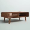 Meja Kopi Kayu Solid Hideki – Mid-Century Modern dengan Pintu Geser