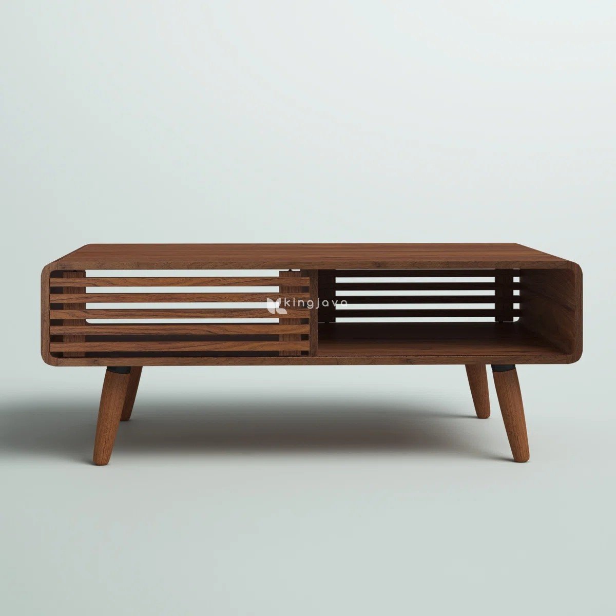 Meja Kopi Kayu Solid Hideki – Mid-Century Modern dengan Pintu Geser