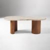 Meja Kopi Marmer Travertine Kayu Solid Modern Kaito