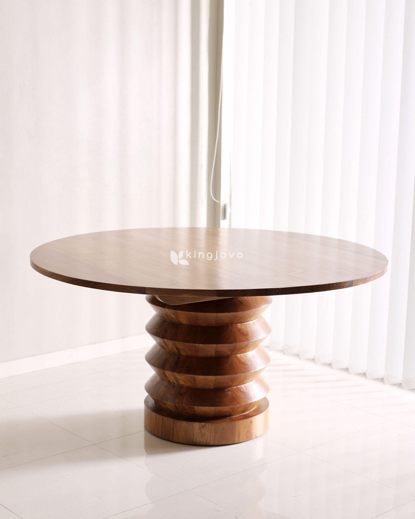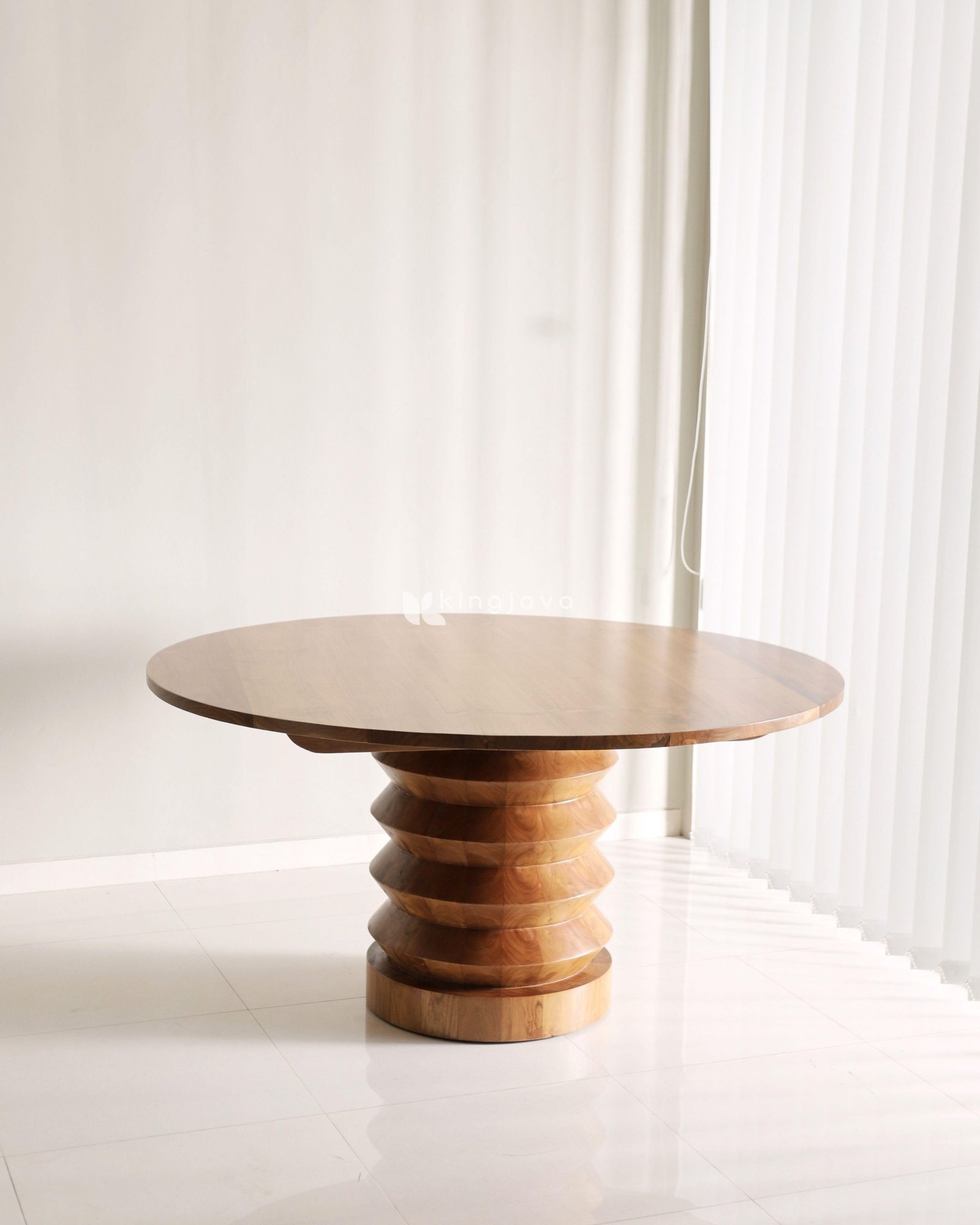 Meja Makan Bulat Minimalis Kayu Jati Tarazko