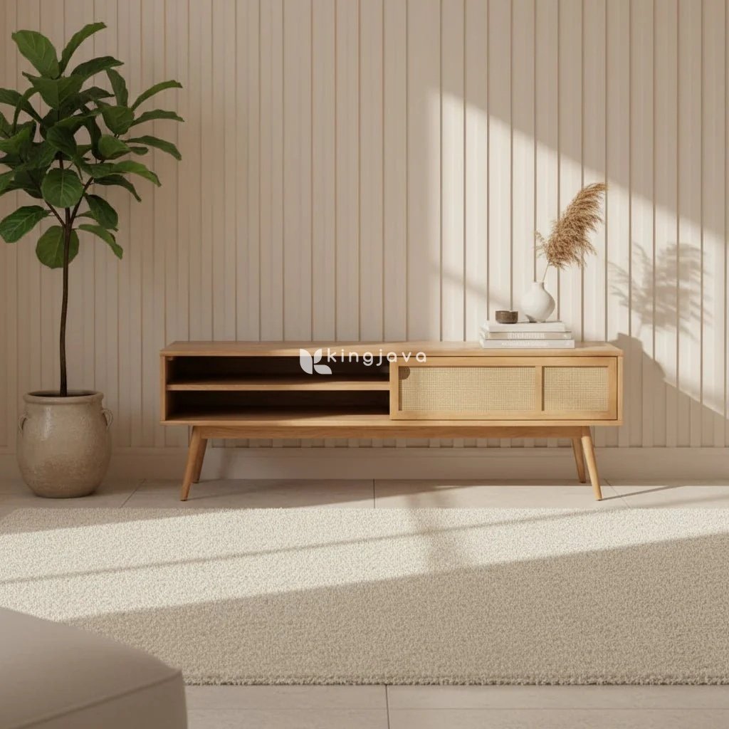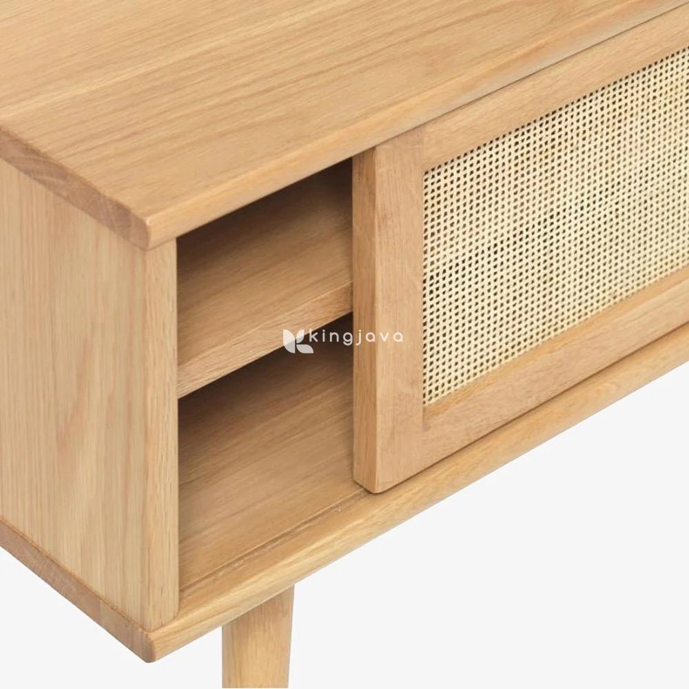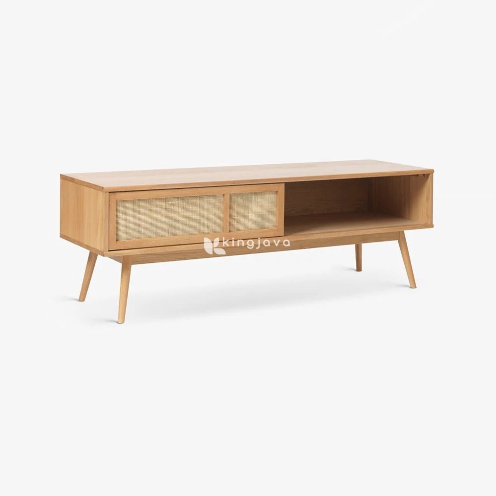 - Nama Produk: Meja TV Kayu Solid Rotan Skandinavia – Finn