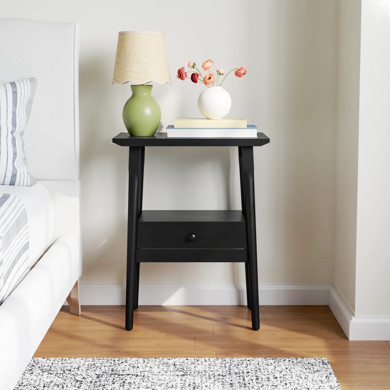 Laci nakas dilengkapi dengan mekanisme buka tutup yang halus dan tahan lama, memastikan kemudahan penggunaan sehari-hari. Desain minimalis tanpa ornamen berlebihan membuat nakas ini mudah dipadukan dengan berbagai gaya dekorasi kamar tidur. Kaki-kaki nakas yang kokoh memberikan stabilitas dan keseimbangan yang optimal. Dengan demikian, nakas ini tidak hanya berfungsi sebagai tempat penyimpanan yang praktis, tetapi juga sebagai elemen dekoratif yang mempercantik ruangan.