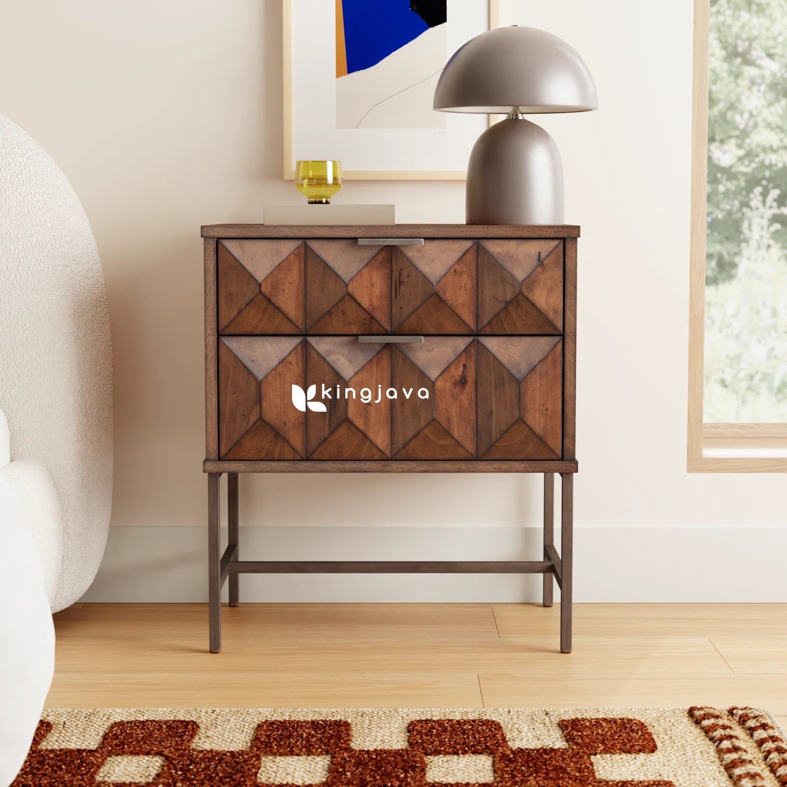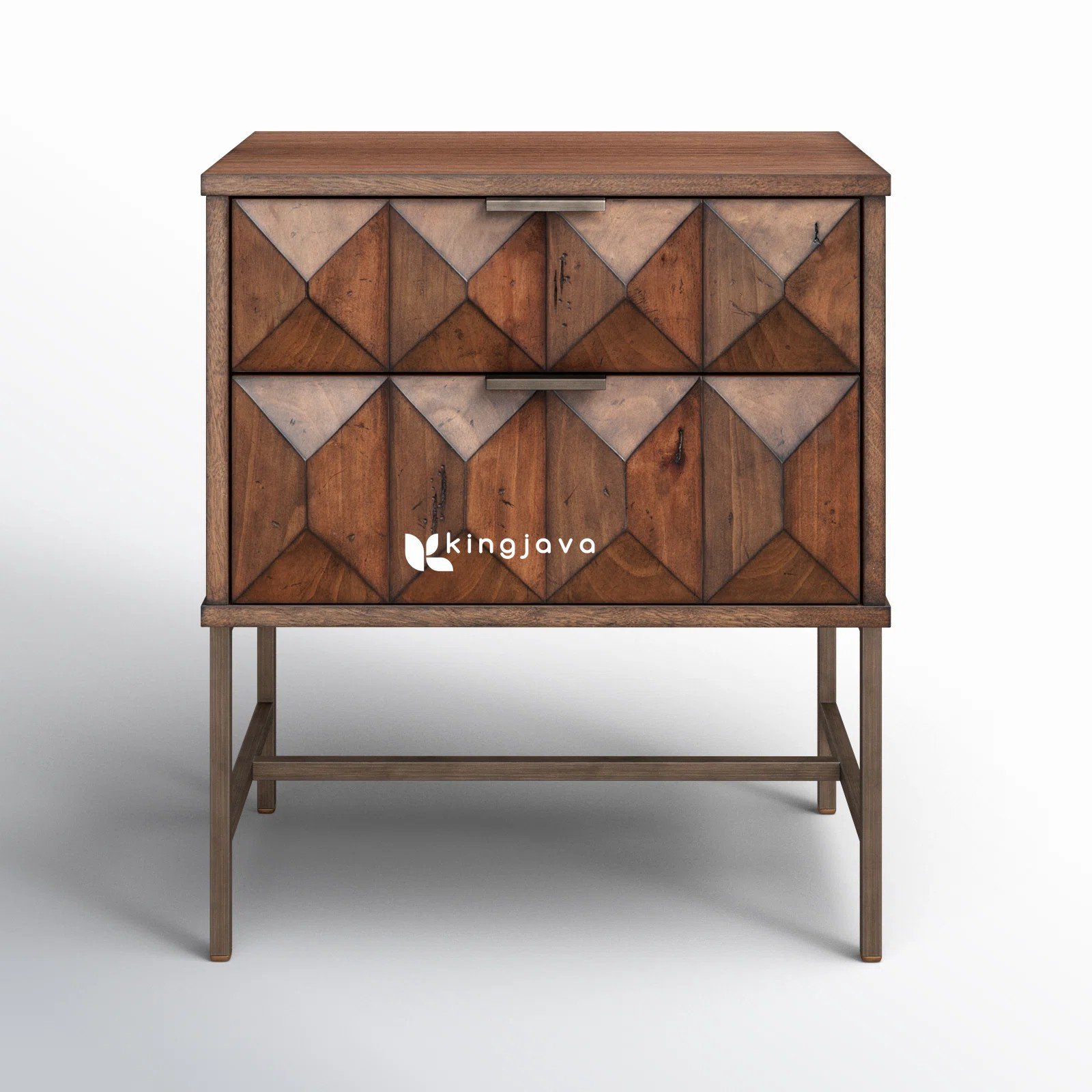 Nakas Jati Solid Geometris Modern dengan 2 Laci – Gala