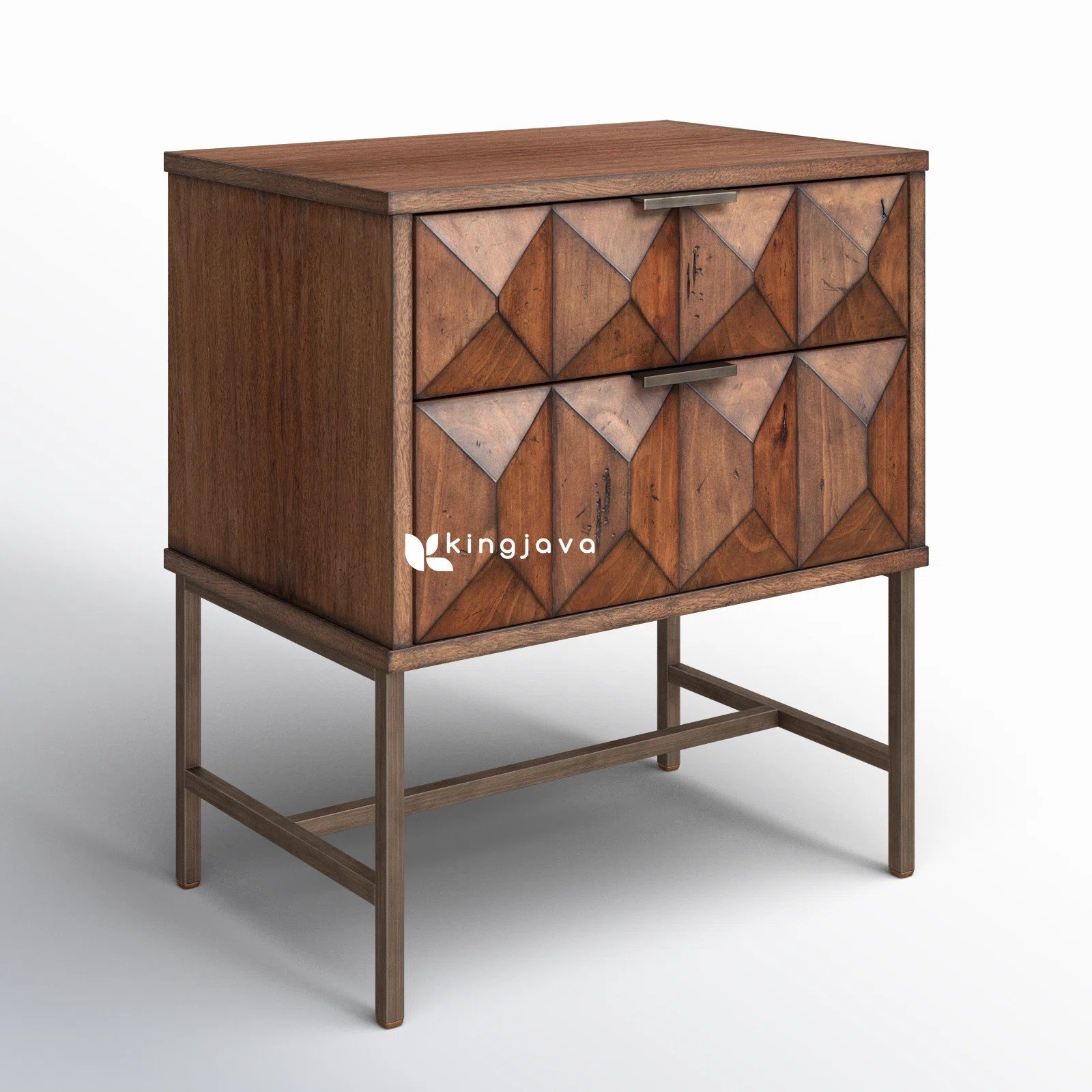 Nakas Jati Solid Geometris Modern dengan 2 Laci – Gala hadir dengan desain yang memukau untuk melengkapi interior hunian Anda. Meja samping ini menampilkan perpaduan harmonis antara bodi kayu jati solid berwarna cokelat gelap dan aksen mozaik geometris yang artistik pada bagian laci. Oleh karena itu, detail visual uniknya menciptakan daya tarik tersendiri, menjadikannya focal point di sudut ruangan.