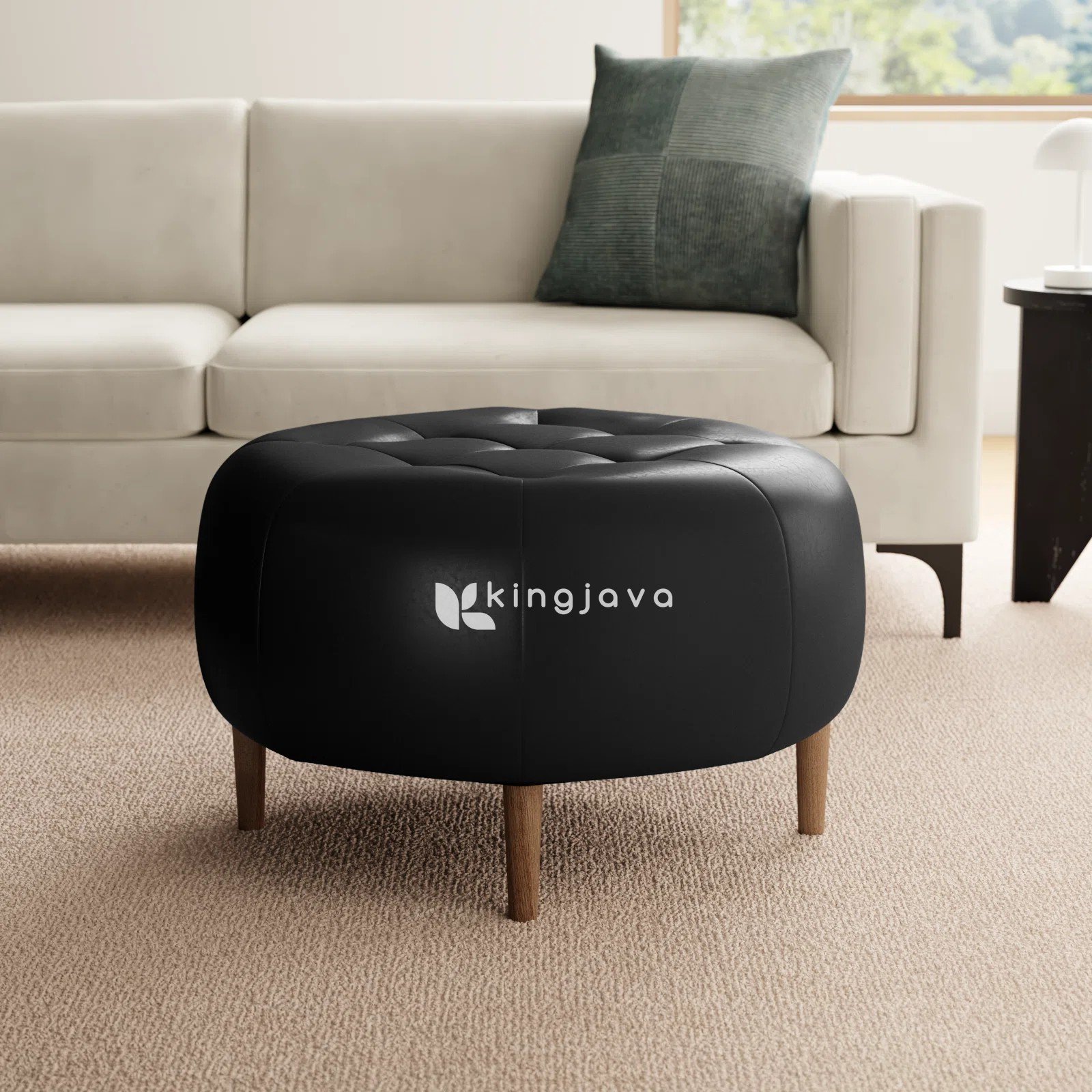 Pouf Kayu Jati Kulit Sintetis Modern – Gala tampil menawan dengan desain bulatnya yang elegan. Warna hitam pekat pada permukaan pouf memberikan kesan mewah dan mudah dipadukan dengan berbagai gaya interior. Selain itu, detail kancing yang tersusun rapi di bagian atas menambah sentuhan klasik modern yang menarik. Dengan demikian, pouf ini bukan hanya berfungsi sebagai tempat duduk tambahan, tetapi juga sebagai elemen dekoratif yang mempercantik ruangan.