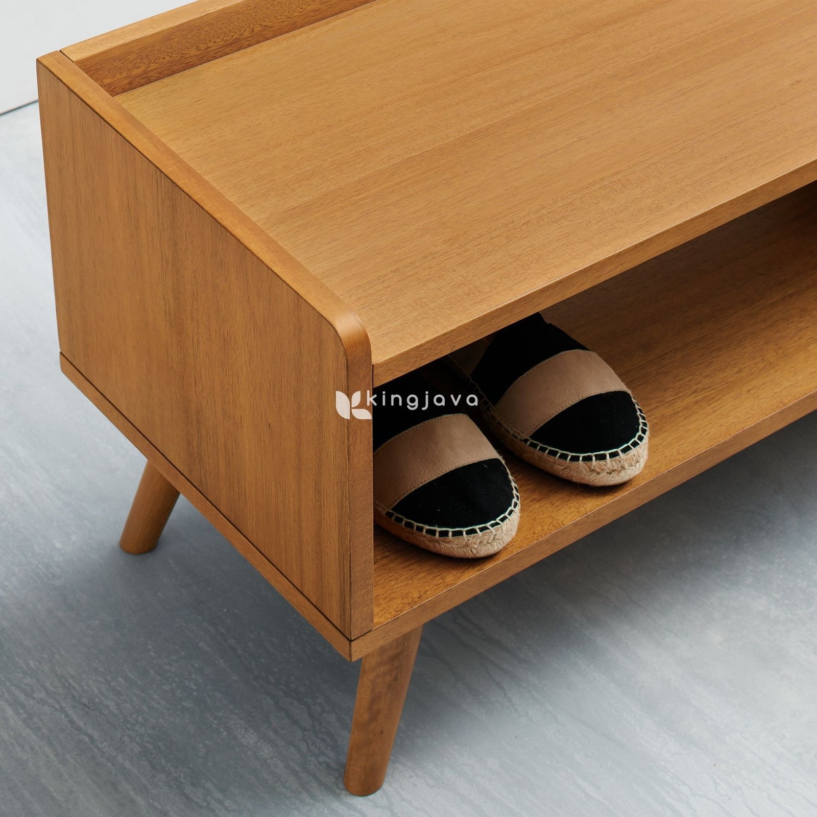 Rak Sepatu Bangku Kayu Jati Solid Mid-Century Modern – Constantine