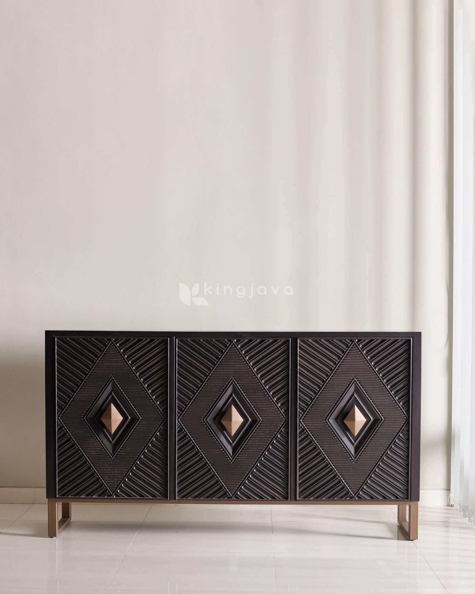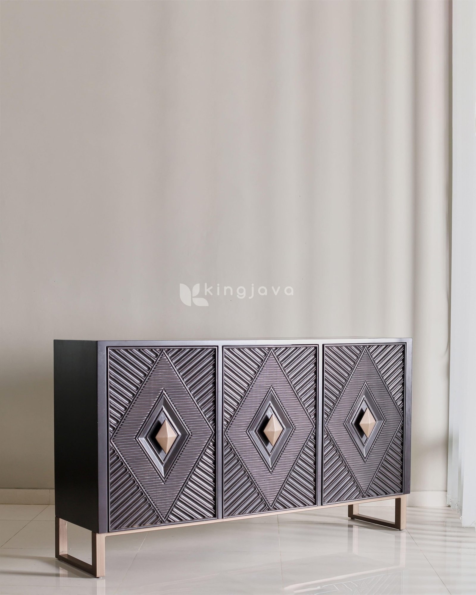 - Nama Produk: Sideboard Minimalis Modern Kayu Hitam dengan Desain Geometris