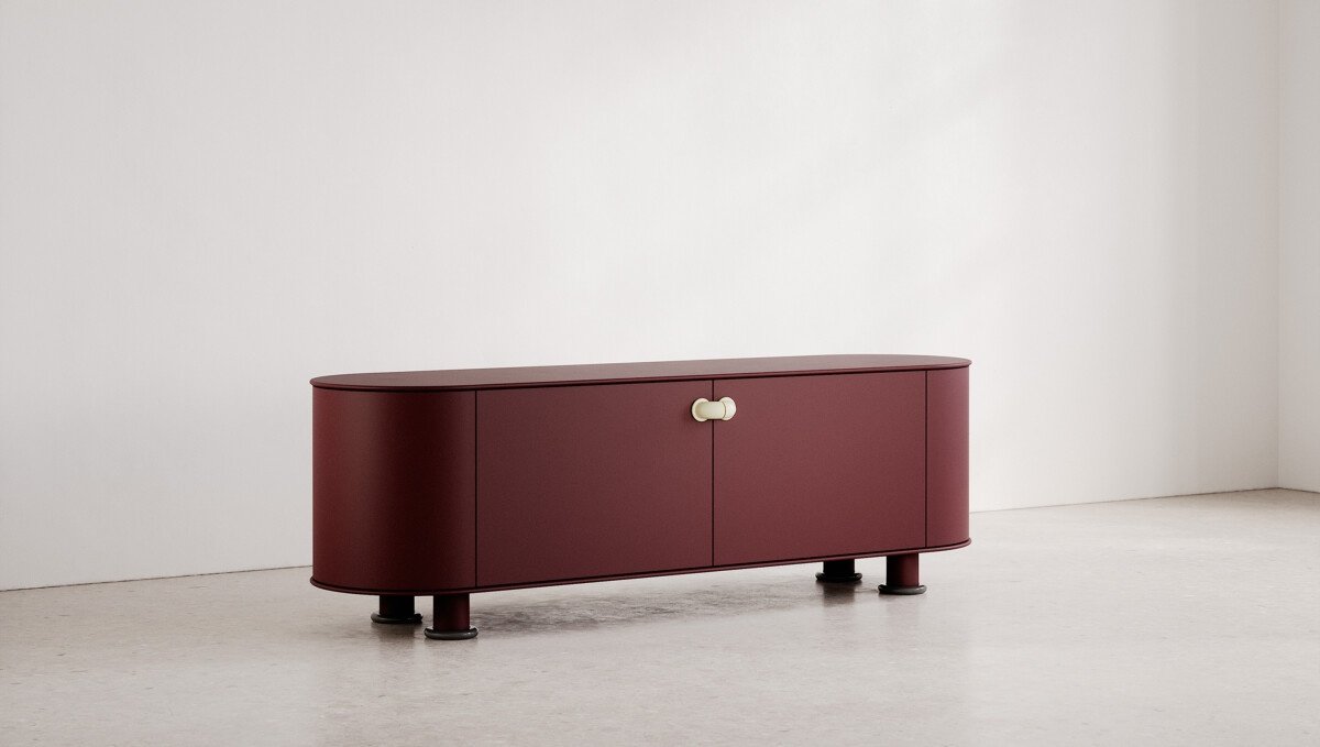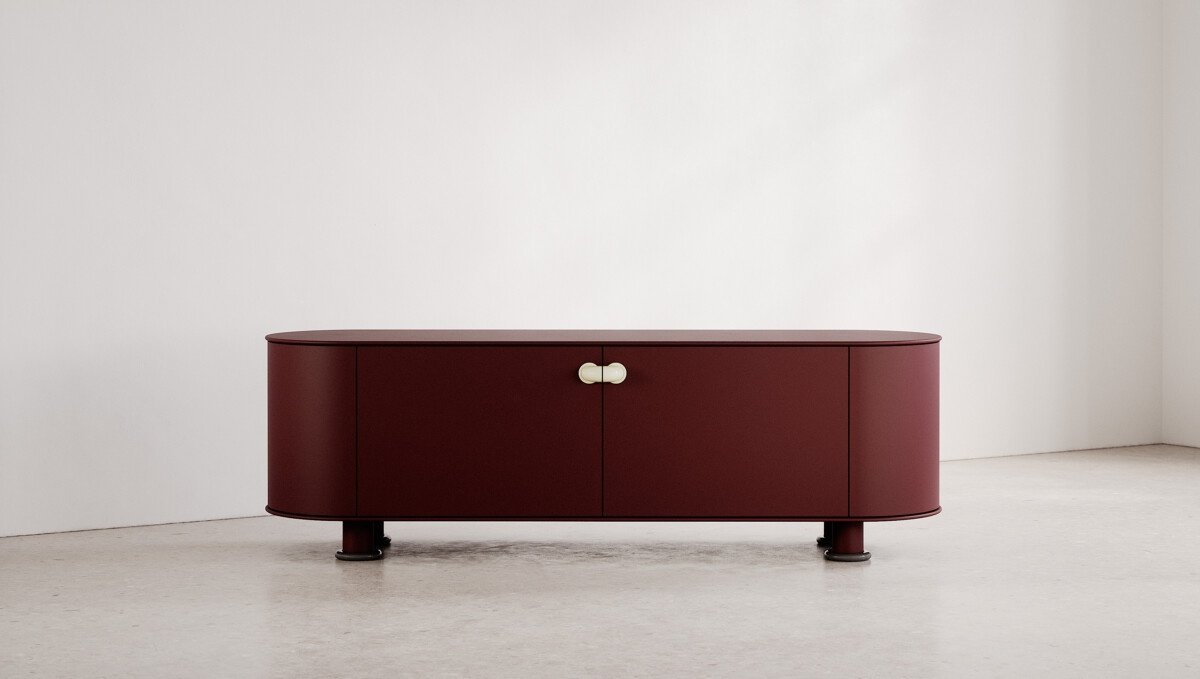 Sideboard Modern Minimalis Maroon dengan Handle Unik – Freya