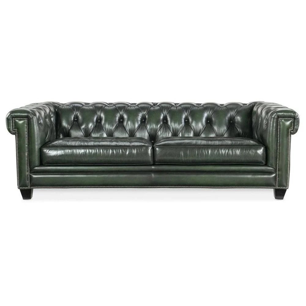 Sofa Chesterfield Kulit Hijau Tua Klasik Sota