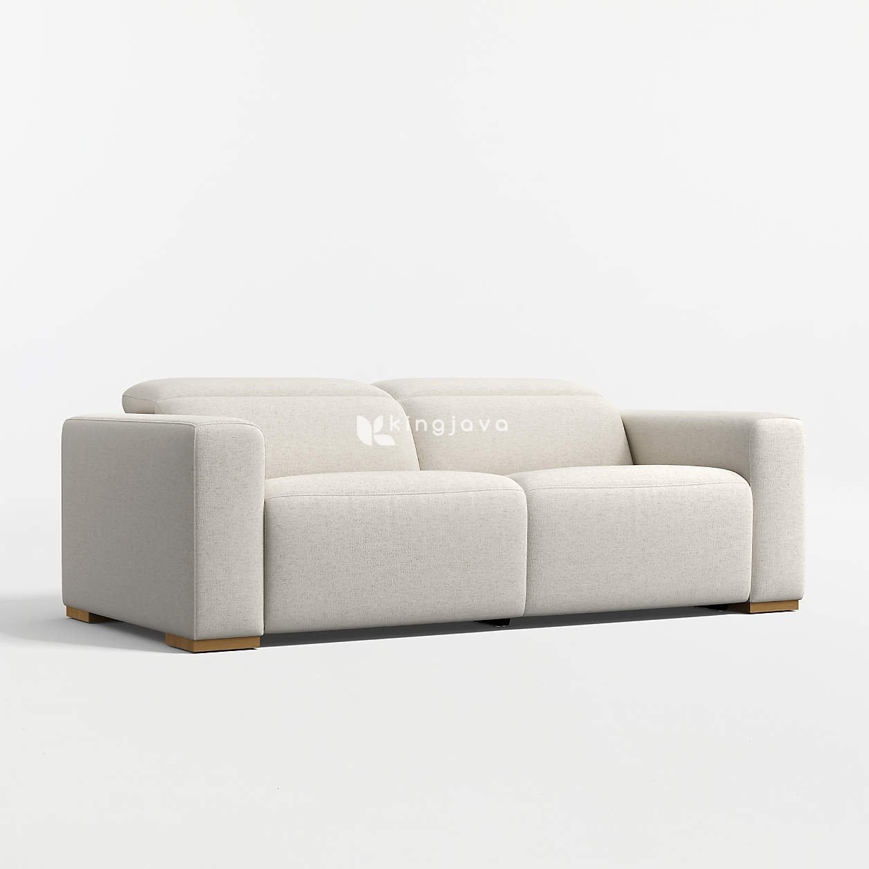 Sofa Donovan ini dibalut dengan kain bertekstur halus berwarna krem yang memberikan kesan hangat dan mengundang. Tekstur kain yang terlihat jelas menambah dimensi visual pada desainnya. Bagian kaki sofa terbuat dari kayu dengan finishing semi-glossy natural yang memberikan sentuhan alami dan kontras yang halus dengan warna kain.