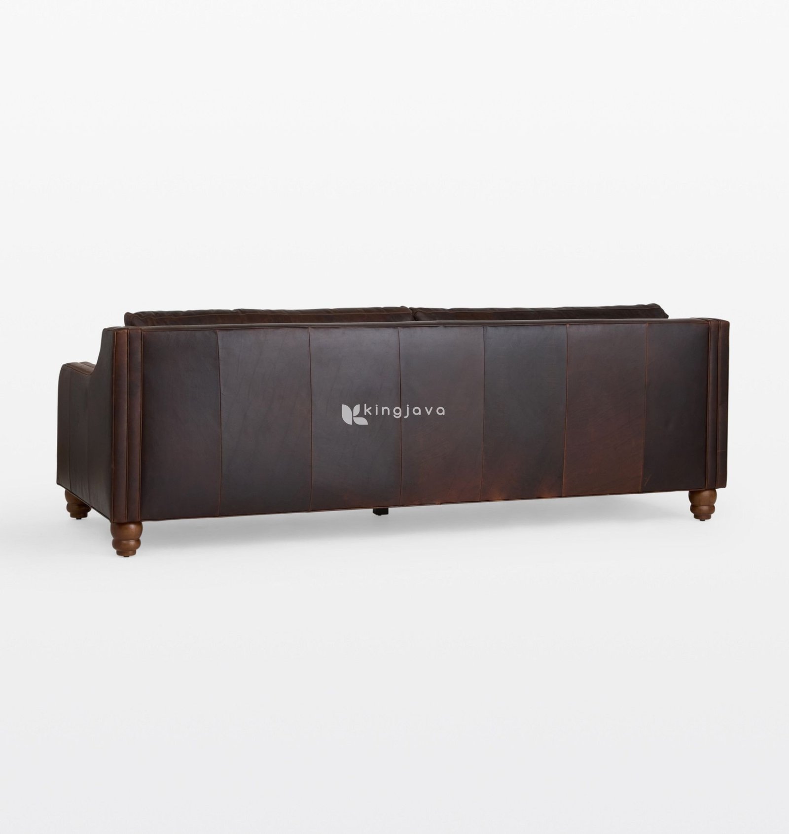 Desain klasik kontemporer sofa Flash diperkuat oleh lengan gulir (rolled arms) yang anggun, memberikan sentuhan kemewahan tradisional sekaligus tetap relevan dengan estetika modern. Bagian belakang sofa juga dilapisi kulit asli dan memiliki panel vertikal yang terstruktur rapi, memastikan tampilan yang menawan dari setiap sudut pandang. Kaki-kaki sofa terbuat dari kayu solid dengan desain bubut (turned legs) yang artistik dan finishing satin natural, menambah sentuhan keindahan klasik dan stabilitas yang kokoh. Proporsi yang seimbang dan kedalaman duduk yang pas menjadikan sofa ini pilihan ideal untuk ruang keluarga, ruang tamu formal, atau area lounge di kantor dan hotel.