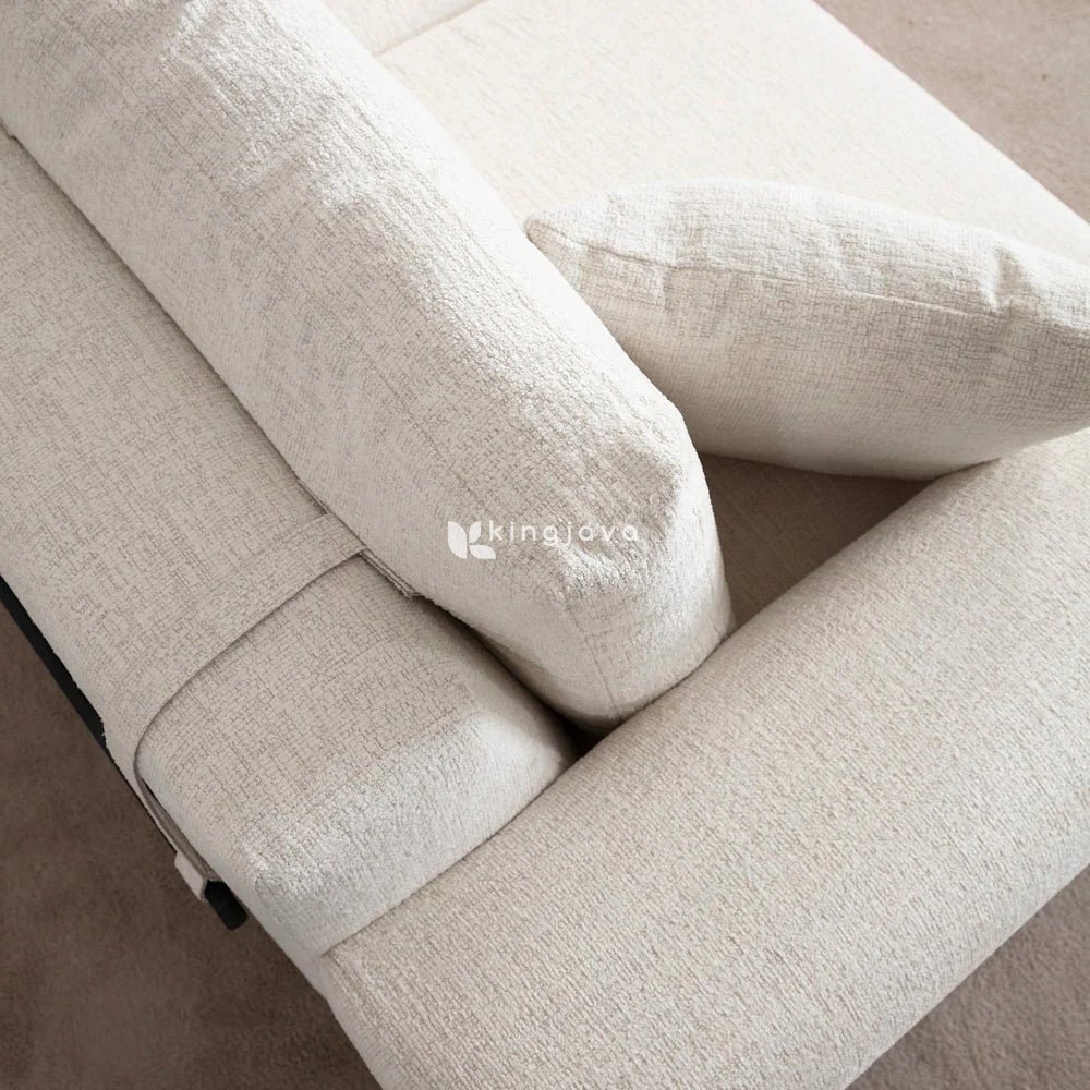 Kaki-kaki sofa terbuat dari metal dengan finishing hitam matte, memberikan kontras yang menarik dengan warna kayu dan kain. Desain kaki yang ramping memberikan kesan ringan dan modern pada sofa. Sofa Seraphina tidak hanya menawarkan kenyamanan, tetapi juga nilai estetika yang tinggi. Dengan desainnya yang elegan dan material berkualitas, sofa ini akan menjadi pusat perhatian di ruang keluarga Anda.