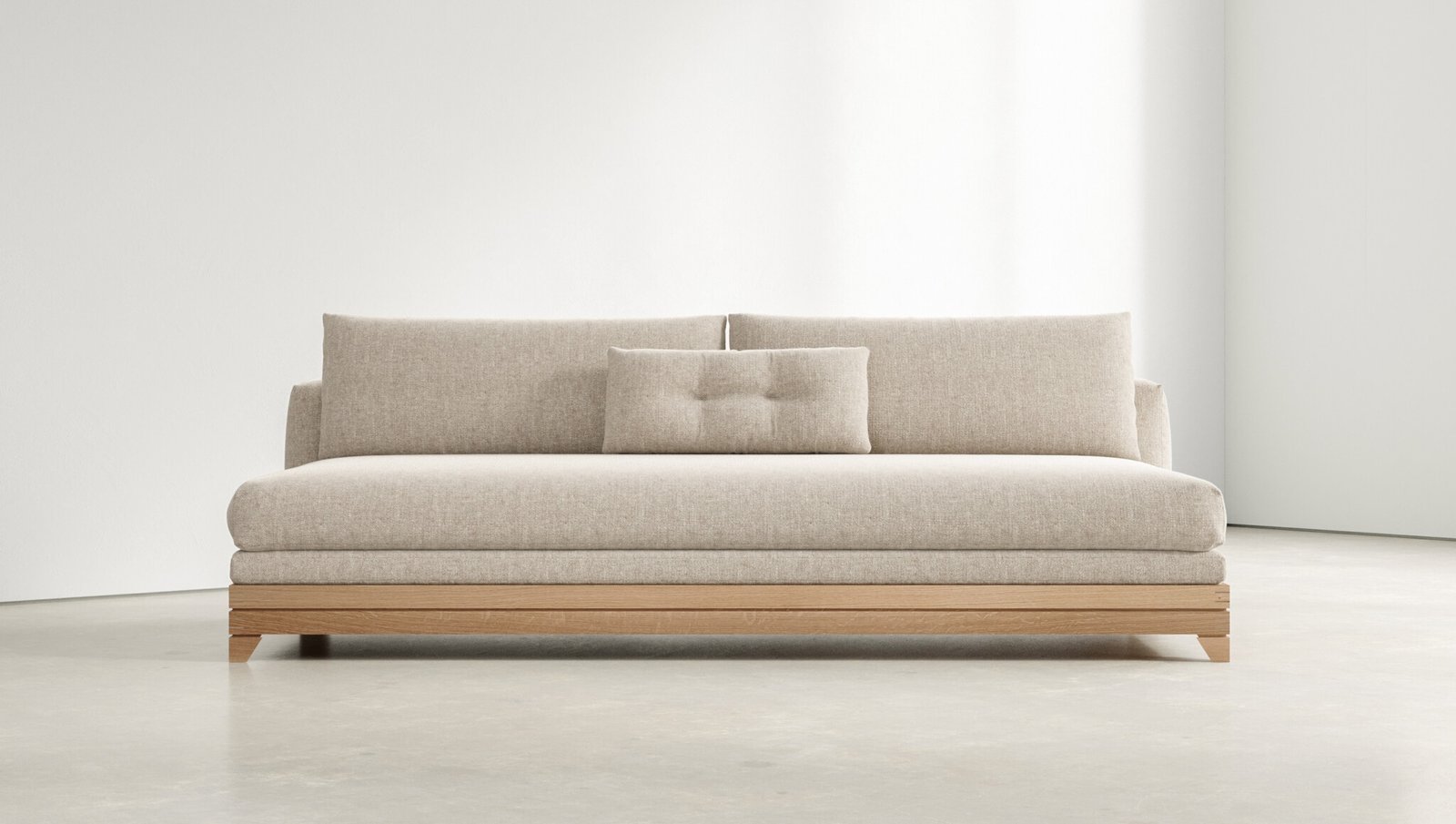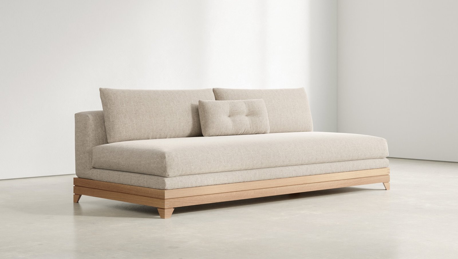 Sofa Minimalis Kayu Jati Kain Linen Alami – Hikari