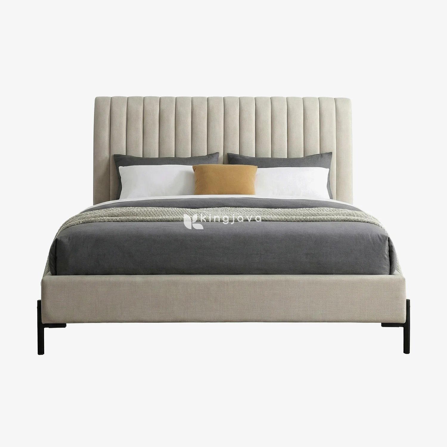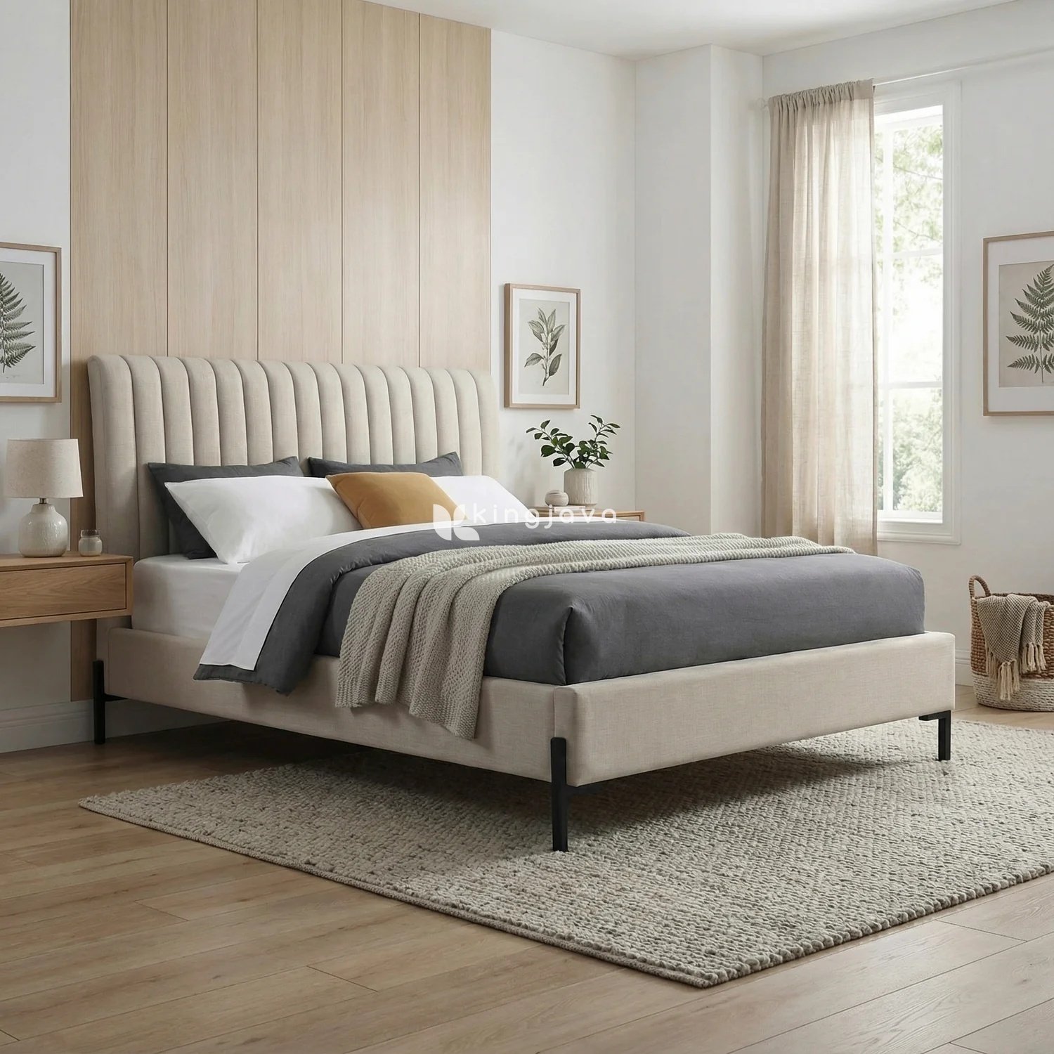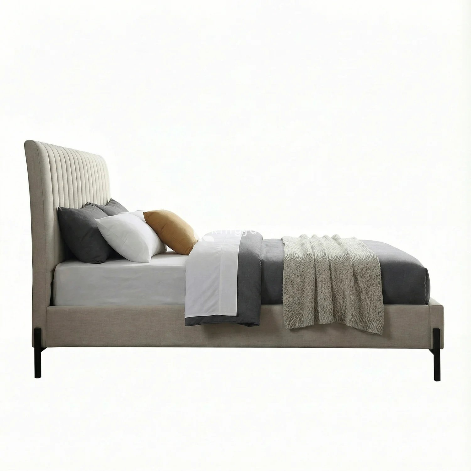 Tempat Tidur Kain Minimalis Modern Sandaran Vertikal – Juno adalah pilihan tepat untuk menciptakan suasana kamar tidur yang nyaman dan elegan. Desain minimalis modernnya dipadukan dengan sandaran kepala bergaris vertikal memberikan sentuhan estetika yang menawan. Rangka tempat tidur ini dilapisi kain berwarna krem lembut dengan tekstur yang halus, memberikan kesan hangat dan mengundang.