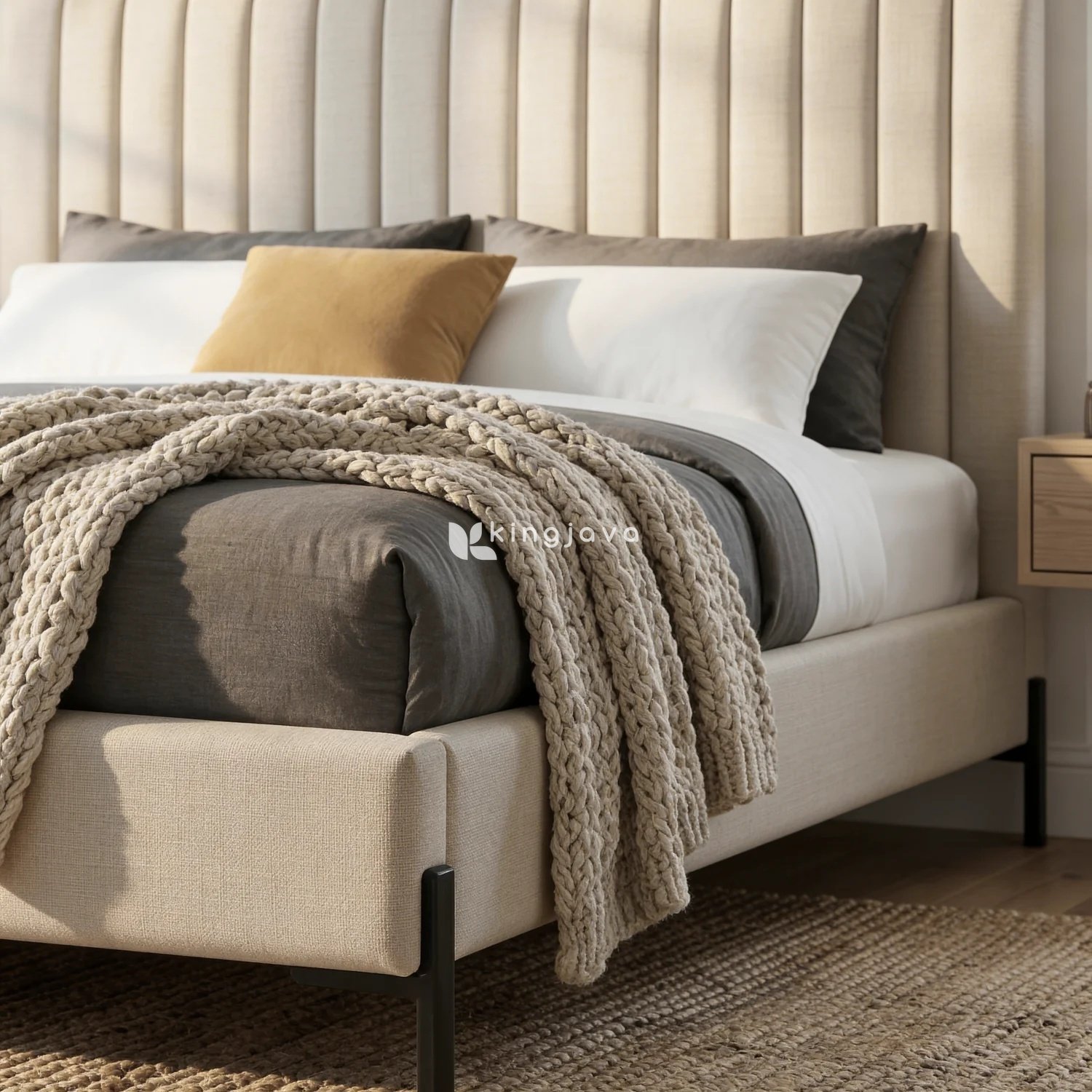 Tempat Tidur Kain Minimalis Modern Sandaran Vertikal – Juno