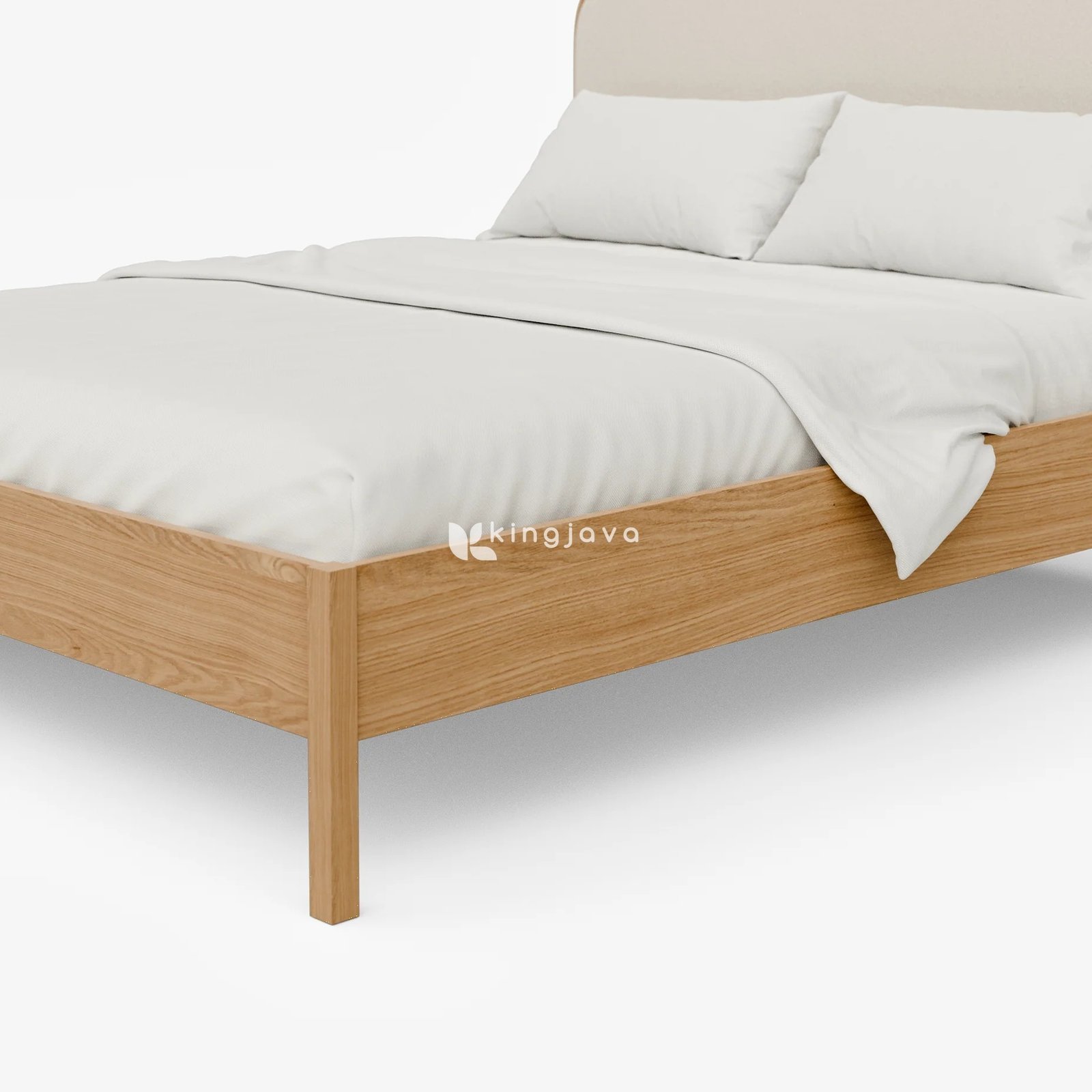 - Nama Produk: Tempat Tidur Kayu Solid Minimalis Headboard Kain – Aethelred